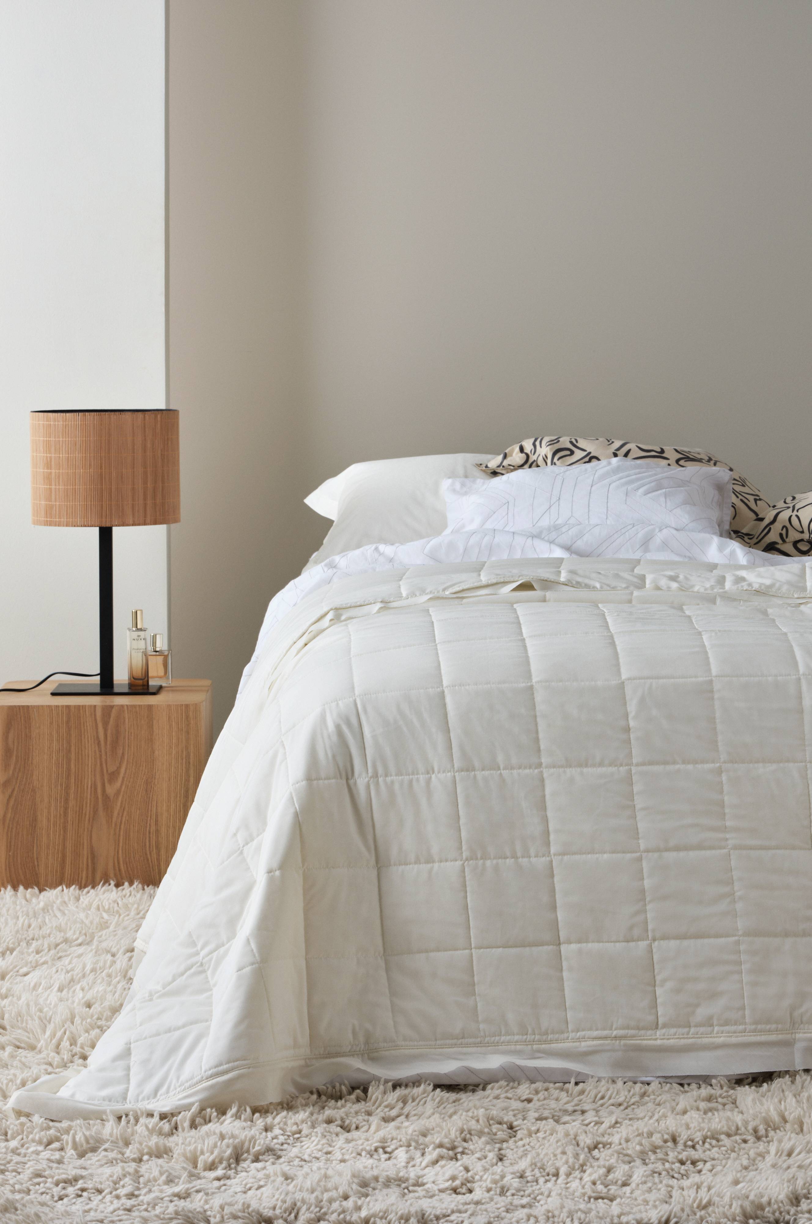 Sengetæppe til dobbeltseng. SENTE er af bomuld og polyester og har garnfarbet udseende som giver et blødt og hjemligt udtryk. Sengetæppet er ternquiltet med smidigt fyld af polyester. En tynd, rå kant runt om er detaljen, der giver sengetæppet en særlig indramning. Pudebetræk medfølger ikke, købes separat.