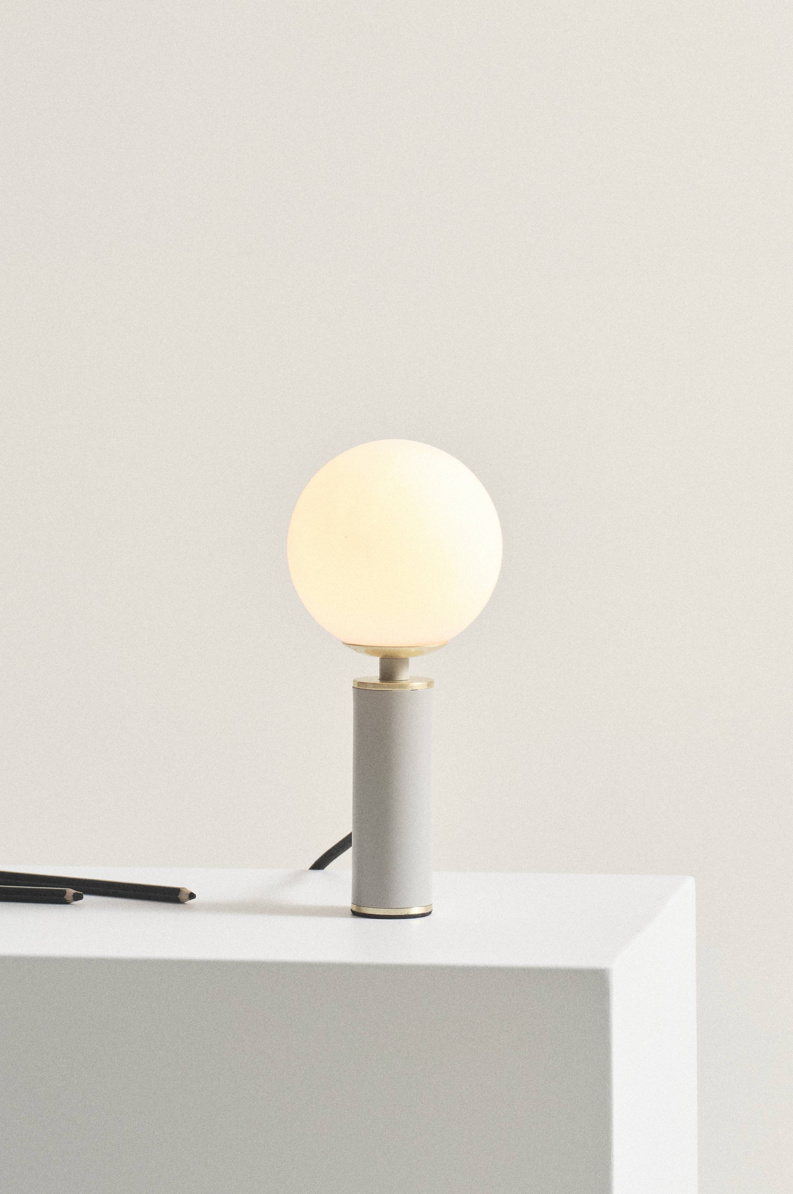 Elegant bordlampe med fod af jern og rund kuppel af hvidt glas. ABBEY er en spændende blanding af moderne og retro. De guldfarvede detaljer giver et luksuriøst udtryk. Lampen har en dæmpbar strømafbryder på ledning.