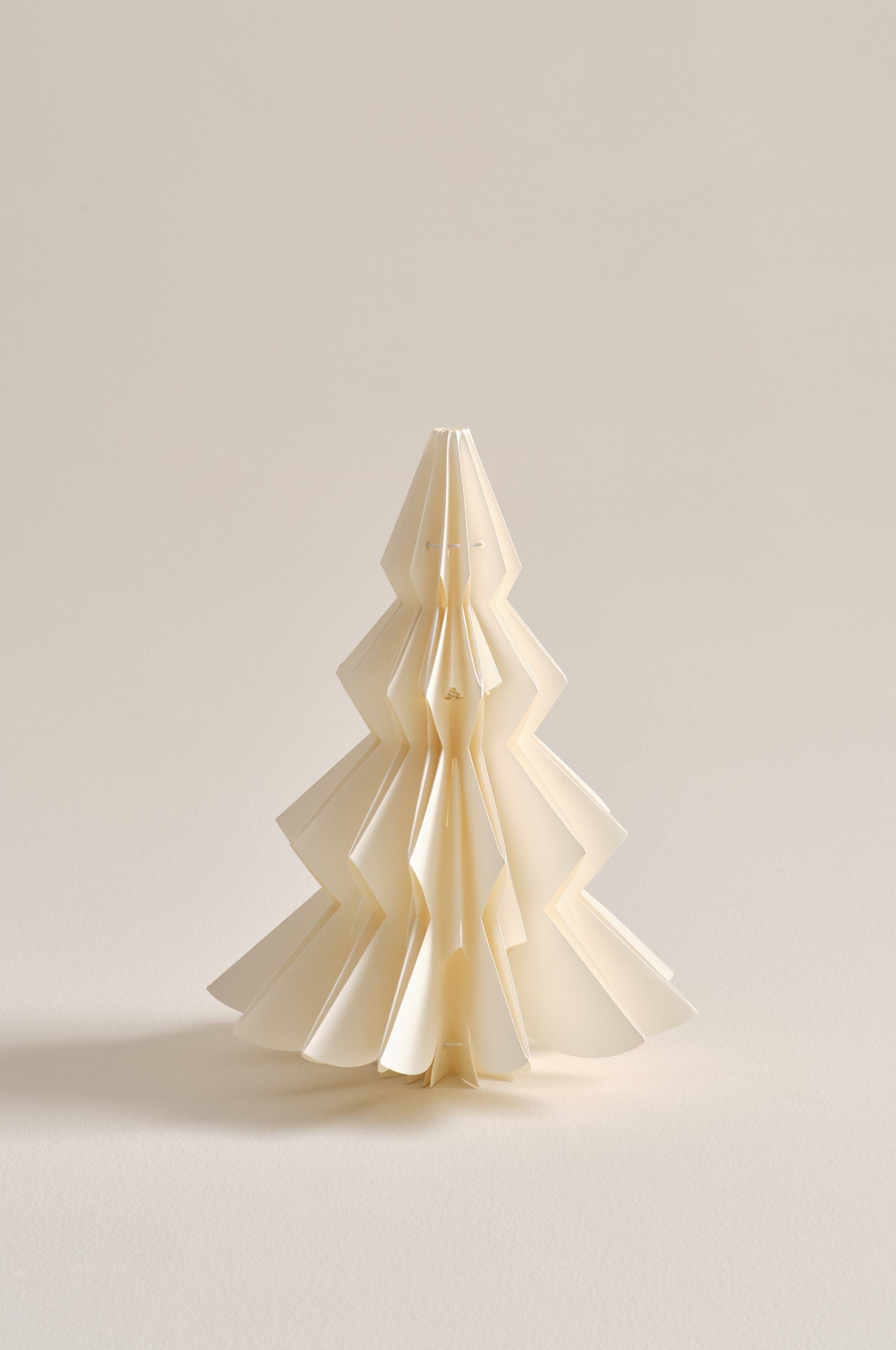 ABIES dekorationsgran er et sammenklappeligt papirjuletræ med en batteridrevet lyskæde. ABIES er en traditionel juledekoration, der er ideel til at skabe en hyggelig stemning. Den enkle, men elegante model er nem at opbevare og hurtig at sætte op.