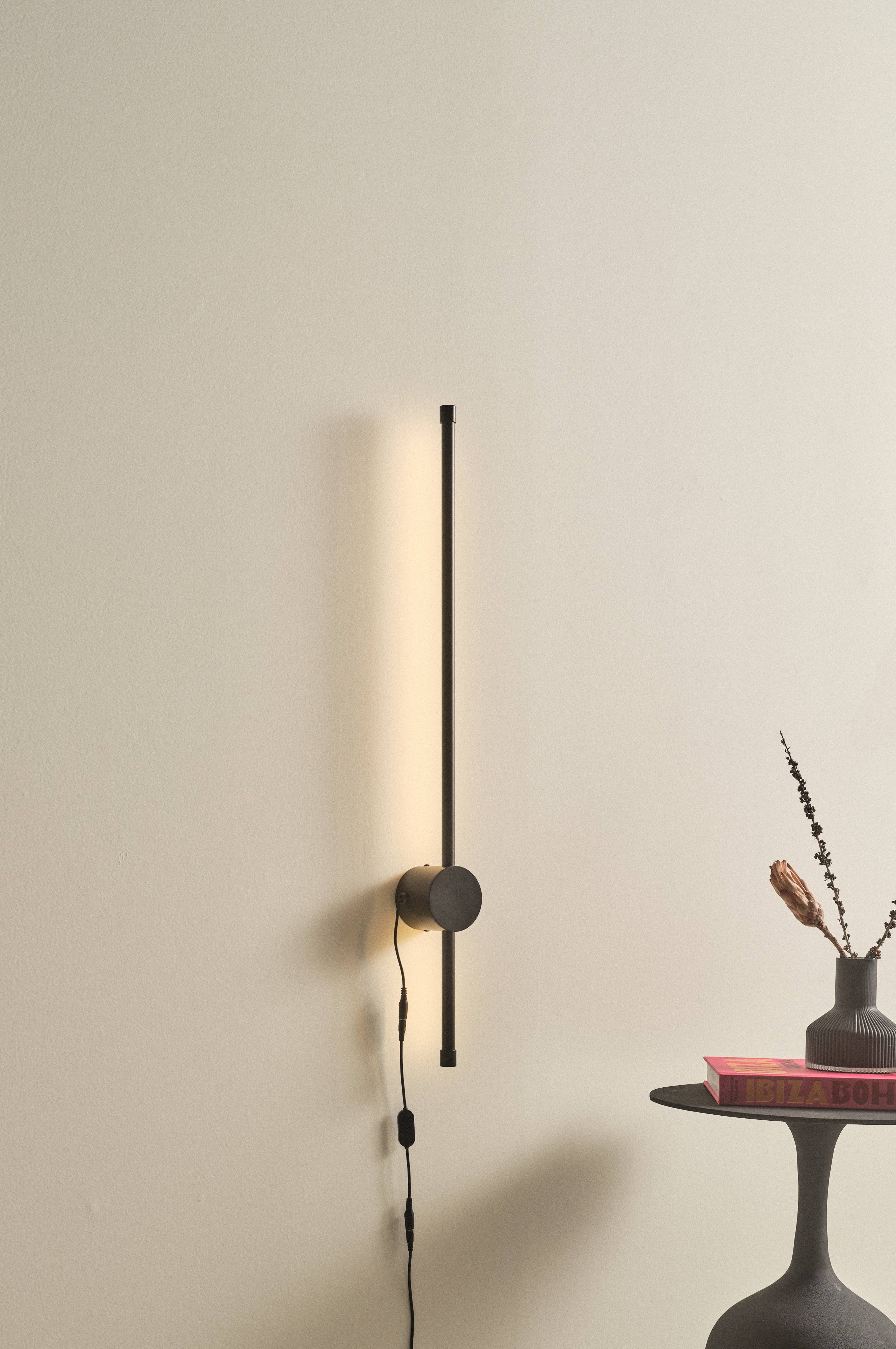 Væglampe af aluminium og akrylglas i elegant, minimalistisk stil. LED-belysningen er integreret, så du behøver ikke at tænke på at supplere med en pære. Desuden har væglampen integreret dæmper, som sidder på ledningen. Akrylglasset er hvidt og aluminiumsdelene har matsort finish. ALISO giver et behageligt lys og med en dæmper kan kontrollere du styrken nøjagtigt som du vil have den.
