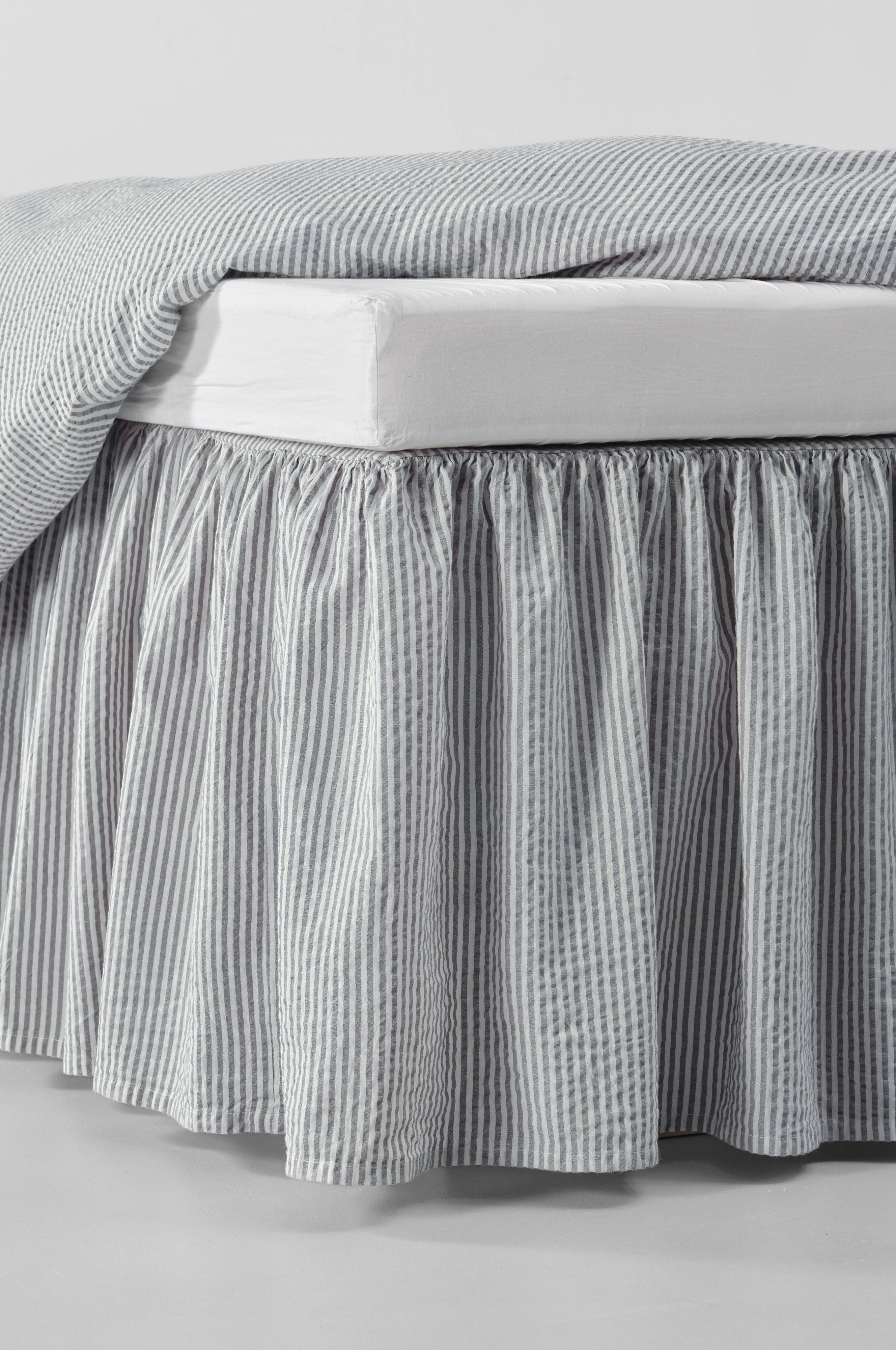 Sengekappe skjuler alt det, vi opbevarer under sengen og giver samtidig et løft til soveværelset. Jeg er meget tilfreds!