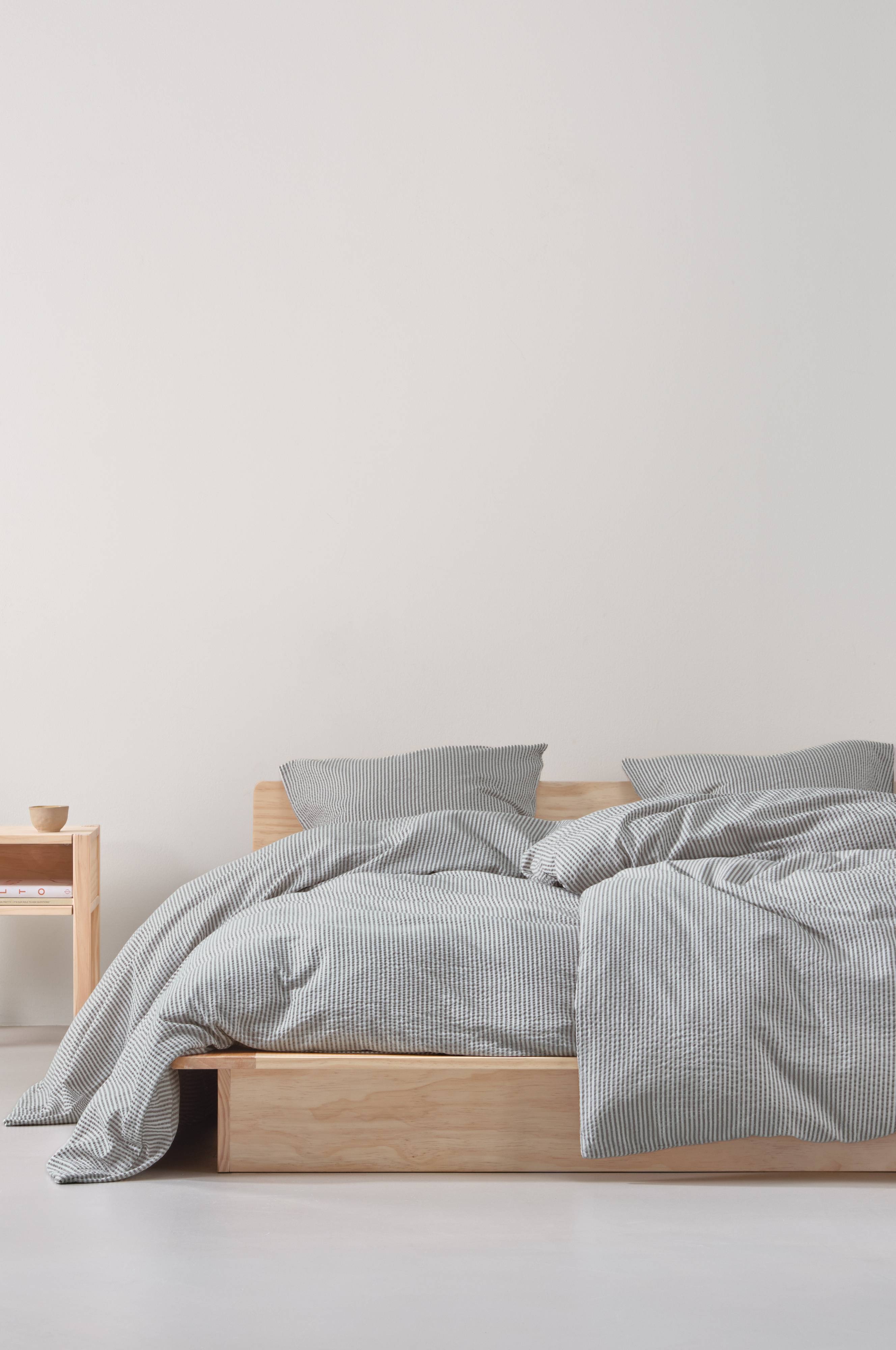 ALMA dynebetræk giver et strejf af elegance og komfort til dit soveværelse. Med garnfarvede striber i forvasket bomuld giver dette sæt en blød og hyggelig fornemmelse. Sættet har en praktisk knaplukning og består af et dynebetræk og et matchende pudebetræk. Kombiner det med andre ting fra ALMA FAMILY for et koordineret look. Perfekt til dem, der sætter pris på både stil og komfort.