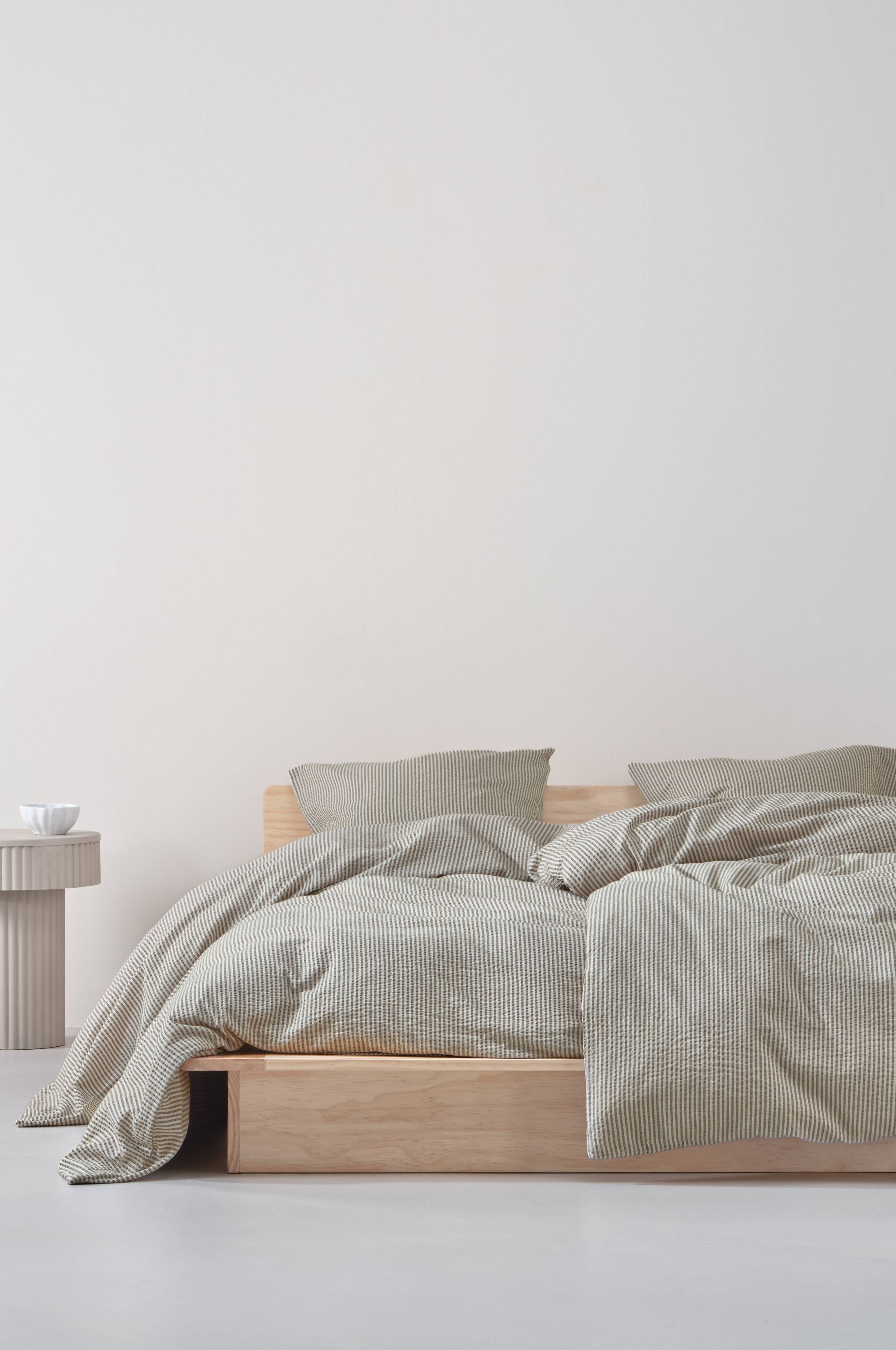 ALMA dynebetræk giver et strejf af elegance og komfort til dit soveværelse. Med garnfarvede striber i forvasket bomuld giver dette sæt en blød og hyggelig fornemmelse. Sættet har en praktisk knaplukning og består af et dynebetræk og et matchende pudebetræk. Kombiner det med andre ting fra ALMA FAMILY for et koordineret look. Perfekt til dem, der sætter pris på både stil og komfort.
