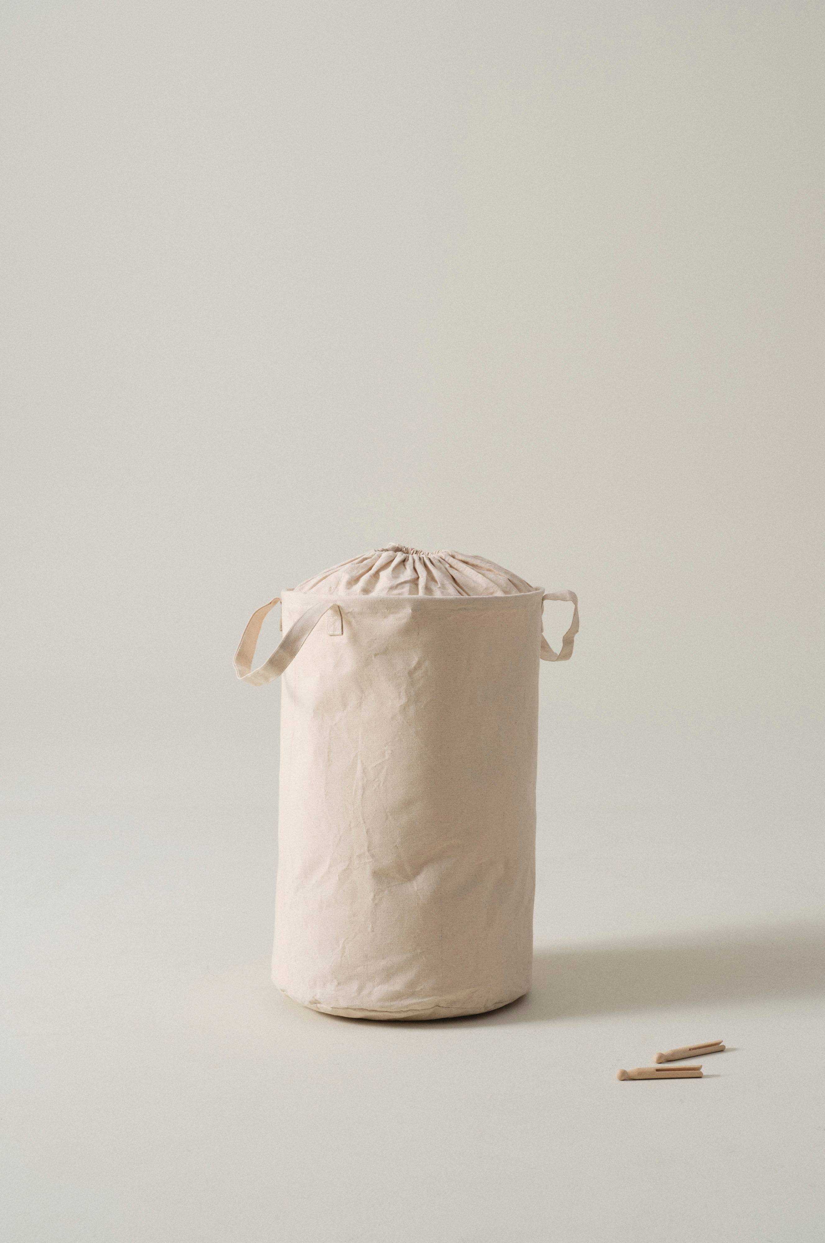 Vævet, ensfarvet vasketøjskurv i bomuld og polypropylen. Vasketøjskurven har hanke i begge sider og lukkes med snøre i løbegang. Opbevar dit vasketøj i en dekorativ og stilren vasketøjskurv.