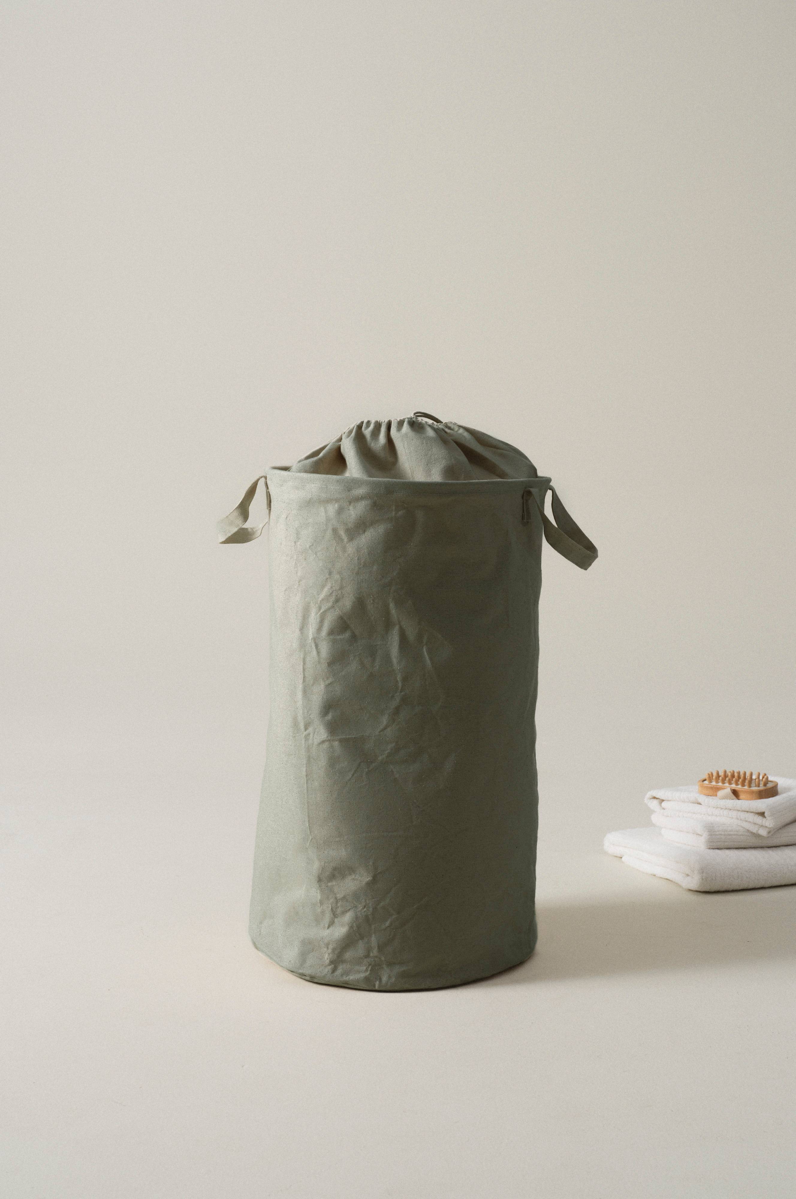 Vævet, ensfarvet vasketøjskurv i bomuld og polypropylen. Vasketøjskurven har hanke i begge sider og lukkes med snøre i løbegang. Opbevar dit vasketøj i en dekorativ og stilren vasketøjskurv.