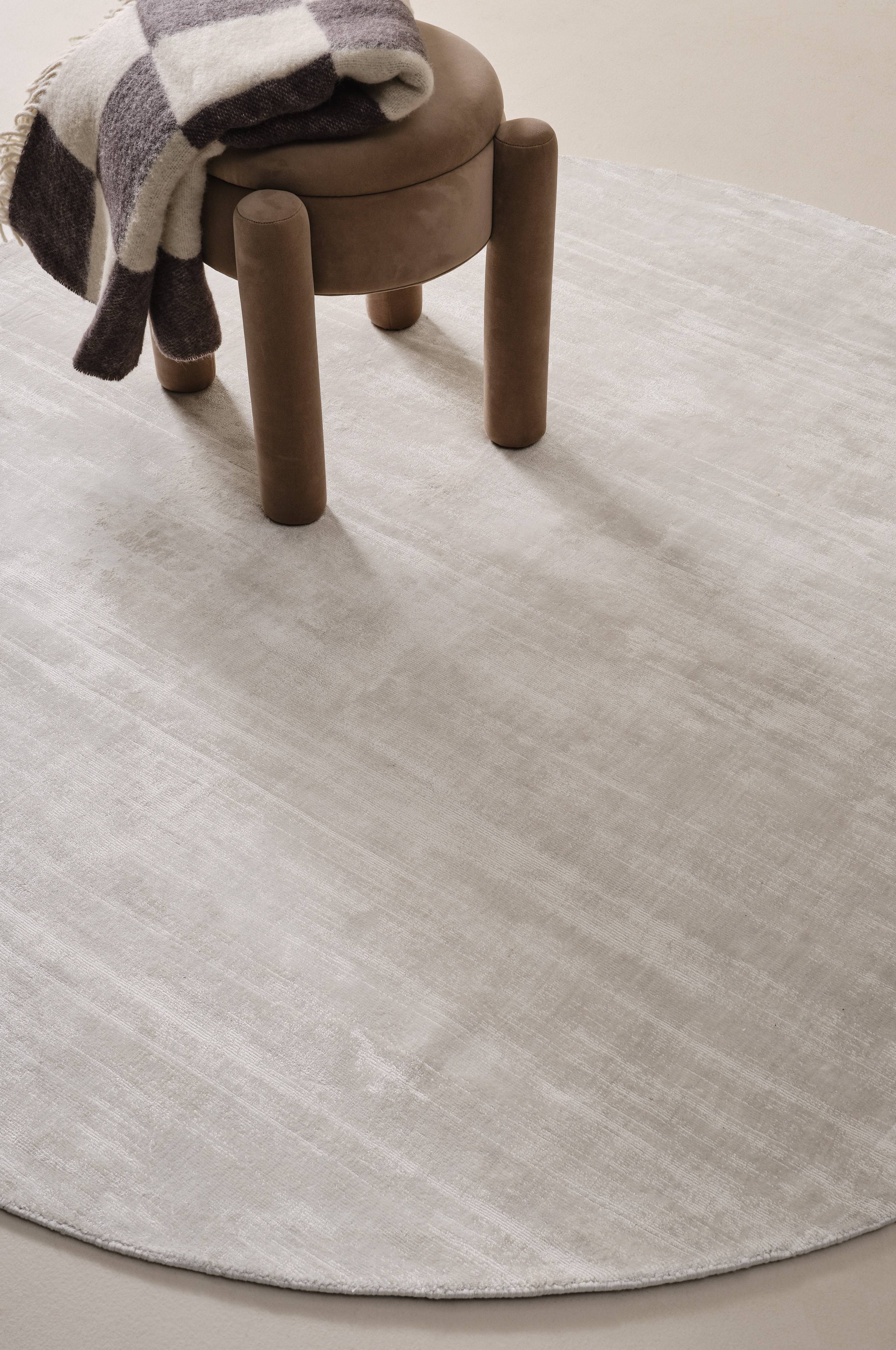 Et rundt tæppe som ANELA giver moderne elegance til din boligindretning. Tæppet er håndvævet med en blanding af viskose og bomuld og har en luksuriøs tekstur og moderne stil. ANELA's omhyggelige håndværk er perfekt til stuer, soveværelser eller andre rum, der har brug for et strejf af raffinement, og forbedrer ubesværet dit interiør. Tilføj dette fantastiske stykke til dit hjem, og oplev både skønhed og komfort under fødderne.