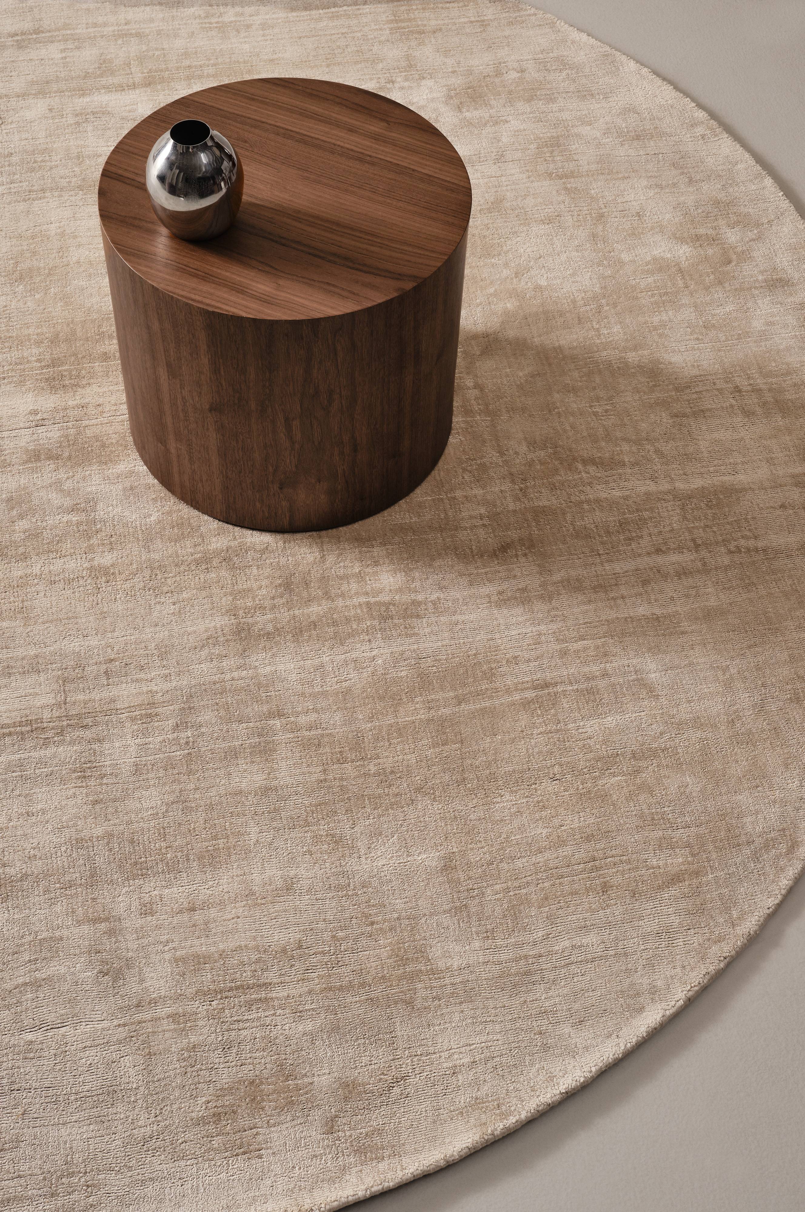 Et rundt tæppe som ANELA giver moderne elegance til din boligindretning. Tæppet er håndvævet med en blanding af viskose og bomuld og har en luksuriøs tekstur og moderne stil. ANELA's omhyggelige håndværk er perfekt til stuer, soveværelser eller andre rum, der har brug for et strejf af raffinement, og forbedrer ubesværet dit interiør. Tilføj dette fantastiske stykke til dit hjem, og oplev både skønhed og komfort under fødderne.