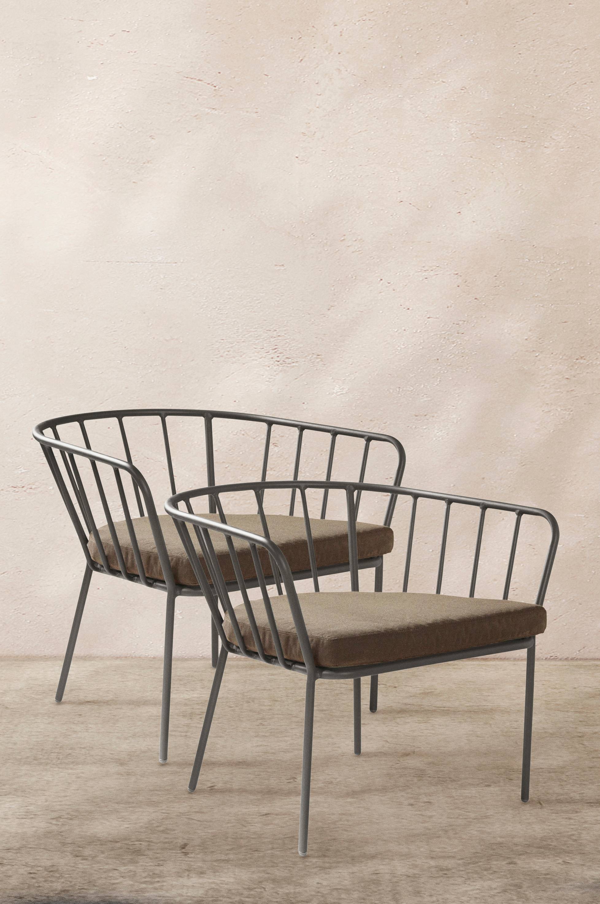 2-pak loungestole af pulverlakeret aluminium med mat overflade. Udendørshygge hører foråret og sommeren til, og det skal helst være nemt. ANTIBES er en praktisk udendørsstol, som tåler vind og vejr, så du slipper for at bære dem ind og ud. Stolene har en mat farve, der ikke reflekterer solen, så du bliver blændet. Hynde medfølger ikke.