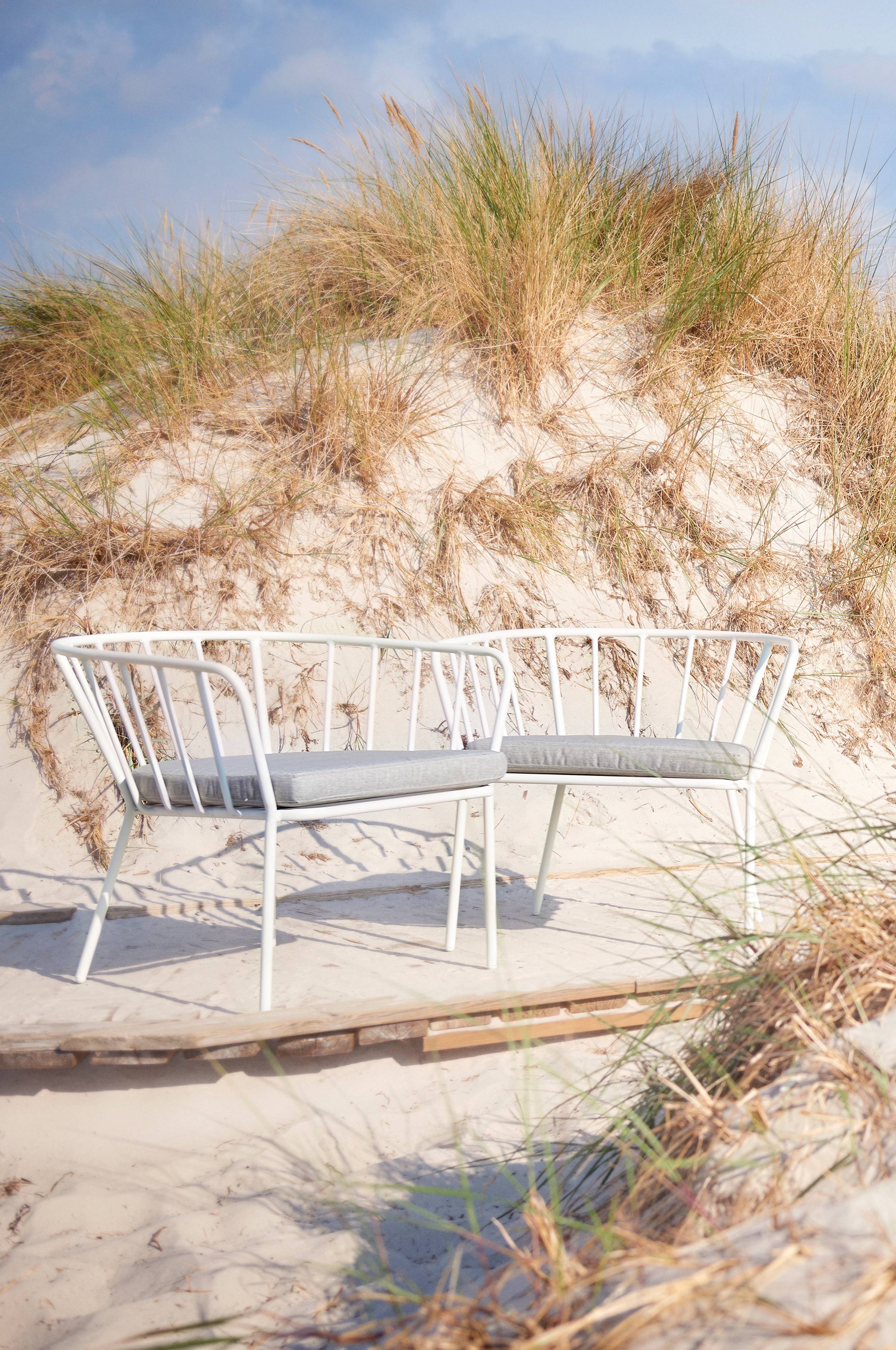 2-pak loungestole af pulverlakeret aluminium med mat overflade. Udendørshygge hører foråret og sommeren til, og det skal helst være nemt. ANTIBES er en praktisk udendørsstol, som tåler vind og vejr, så du slipper for at bære dem ind og ud. Stolene har en mat farve, der ikke reflekterer solen, så du bliver blændet. Hynde medfølger ikke.