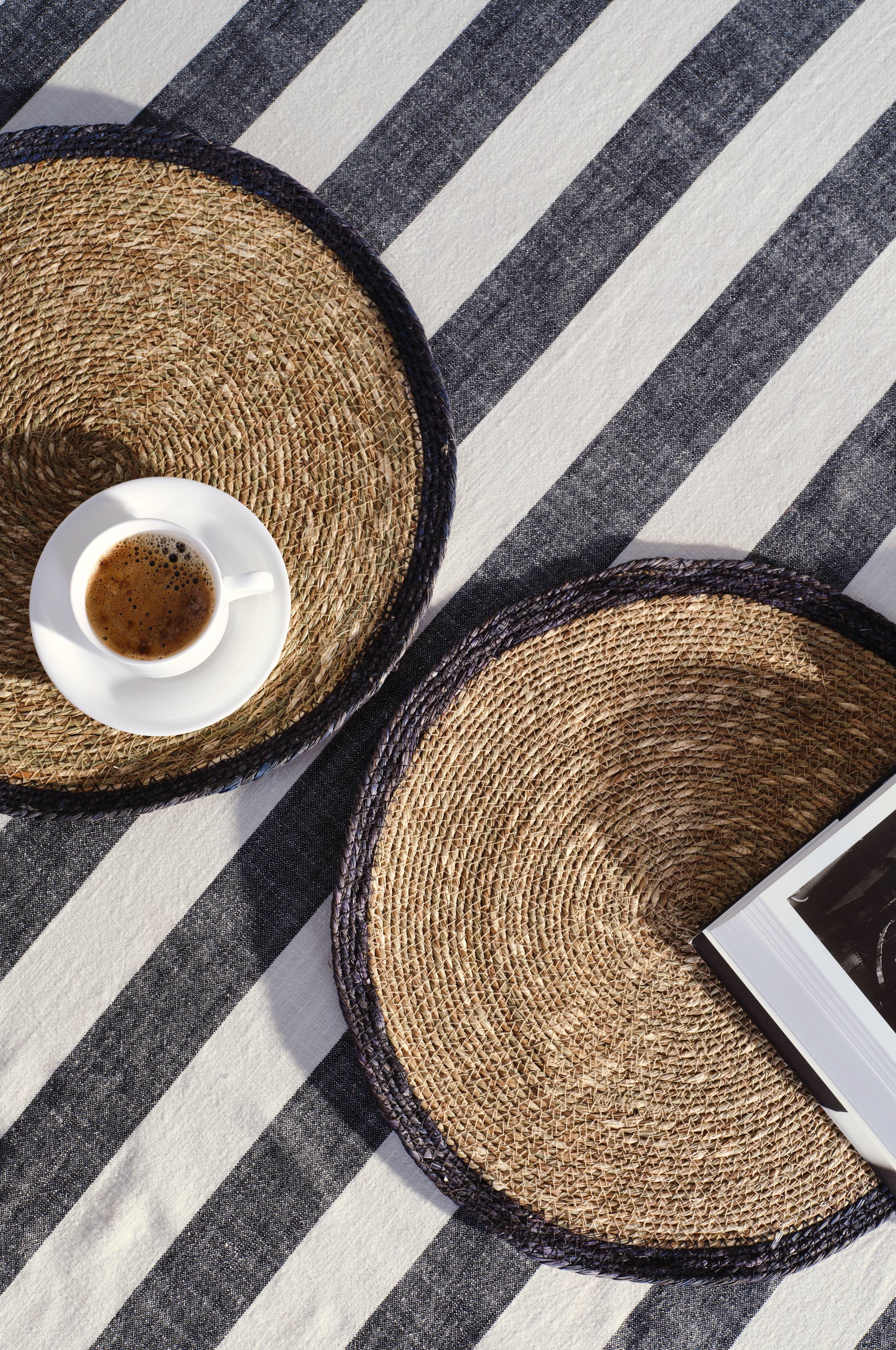 ARI-dækkeservietten giver et strejf af naturlig charme med sit håndflettede søgræsdesign. Hver pakke med to dækkeservietter har et unikt håndværk med subtile variationer, der giver dem karakter. Disse dækkeservietter er ideelle til en spiseoplevelse, der føles både varm og indbydende, og de forbedrer ubesværet stemningen i din borddækning.