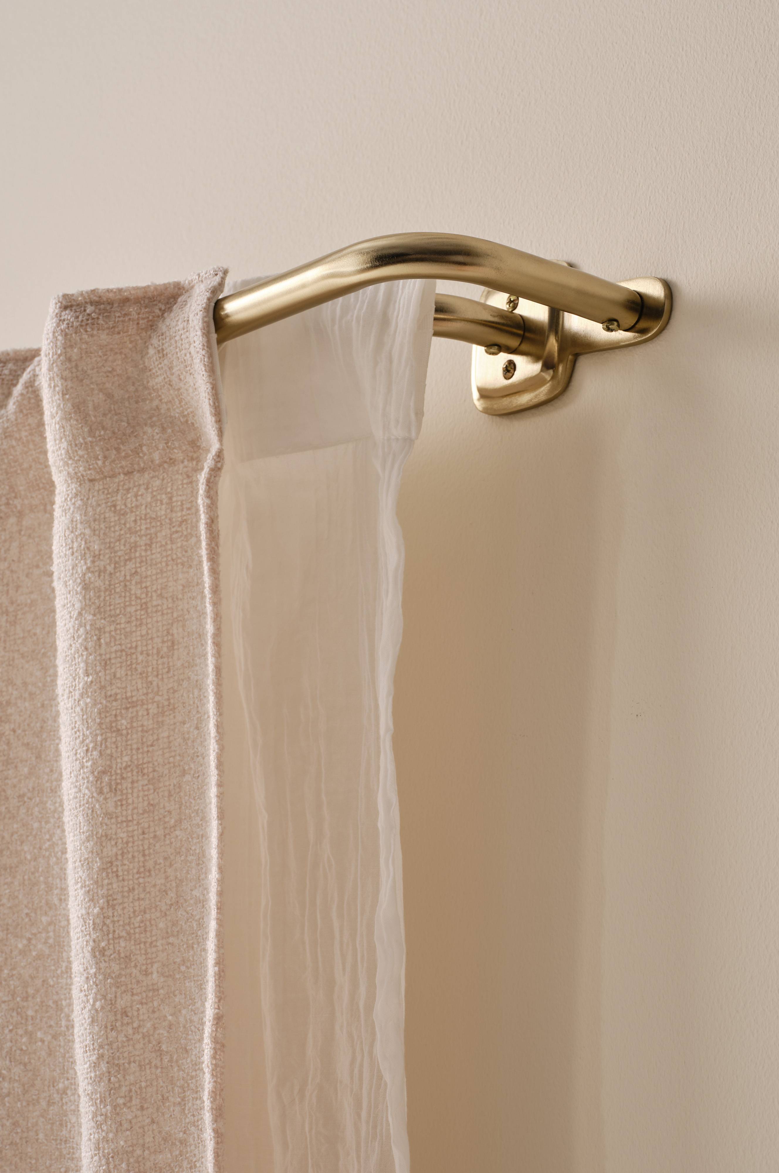 Dejlig gardinstang, der gør det muligt at have to lag gardiner. Gardinstangen er let at samle, men nogle ting gør den lidt klodset. Du skal skrue stængerne på vægfastgørelserne ud, hver ga…