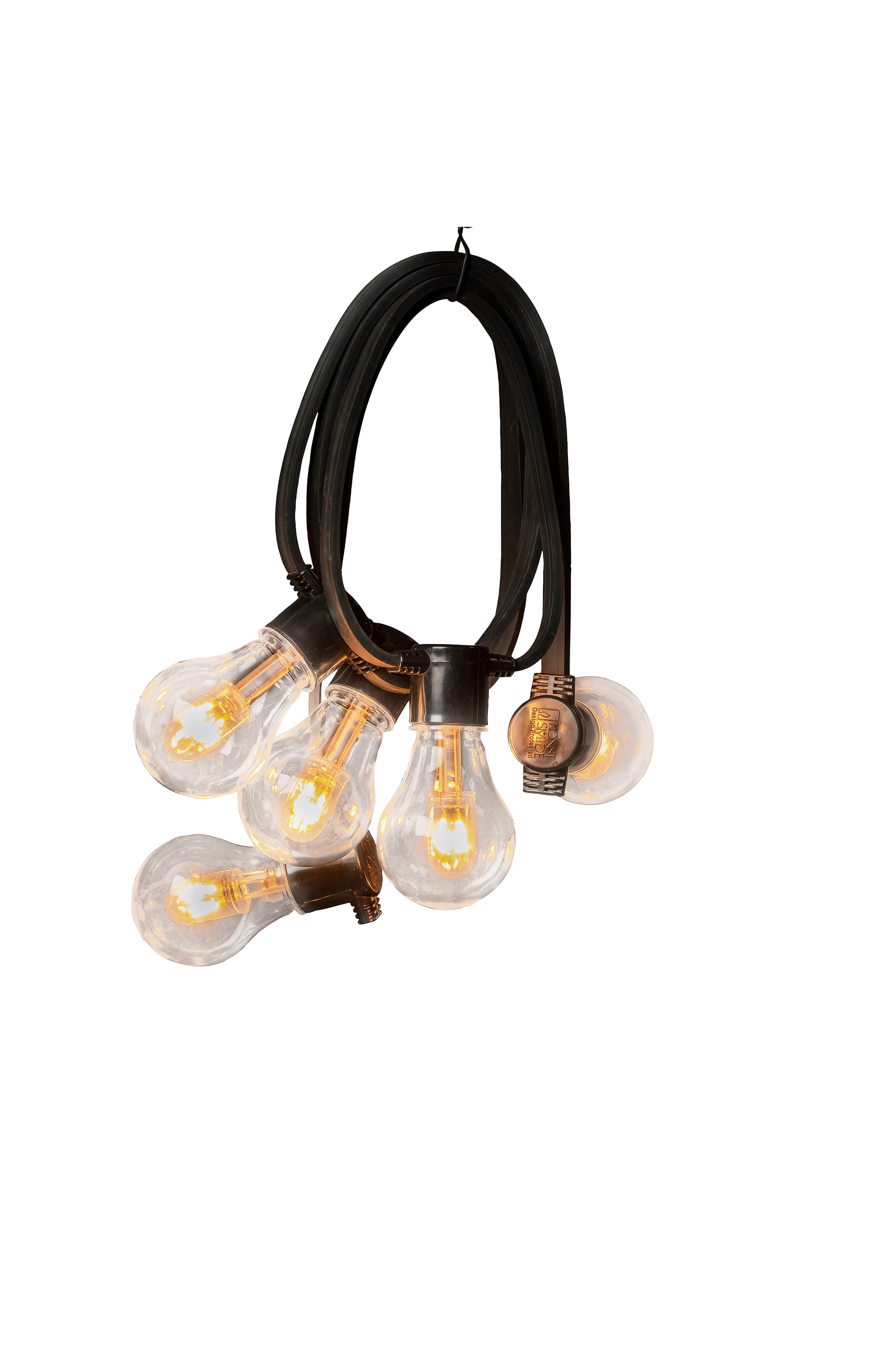 Moderne partylyskæde med medfølgende solpanel og 10 globeformede lys med 0,5 meter mellem hver pære. Solcellepanelet kan oplades via USB ved behov. Fladt kabel. Pærene har udskiftelig LED, timer 4/6/8h og indbygget dæmper. Et 10 meter langt tilslutningskabel gør lyskæden let at placere. inkl. fjernbetjening og jordspyd til solcellepanelet.