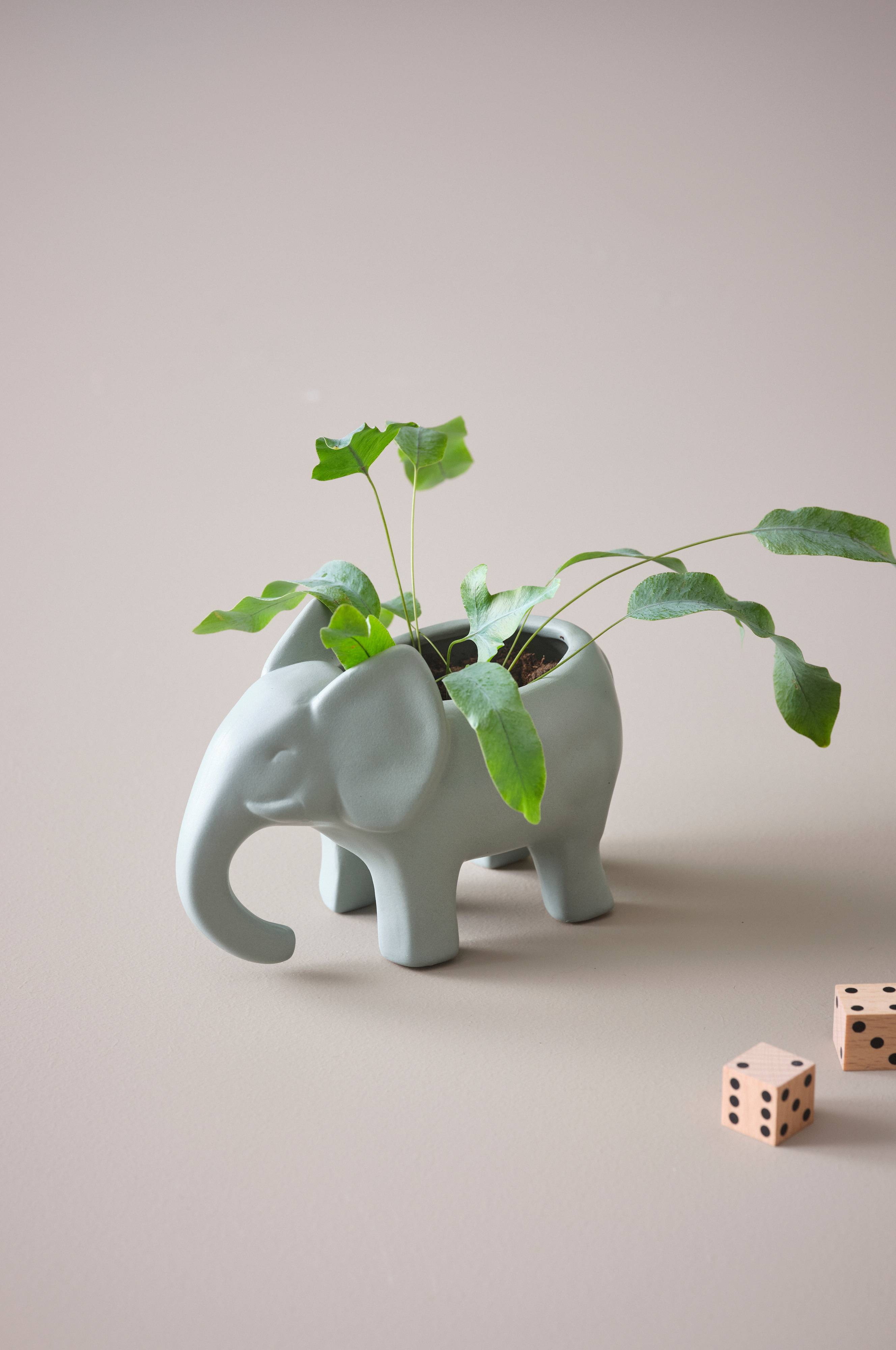 En stor lille sød elefant. Ligesom den der. Let placeret med en grøn plante.