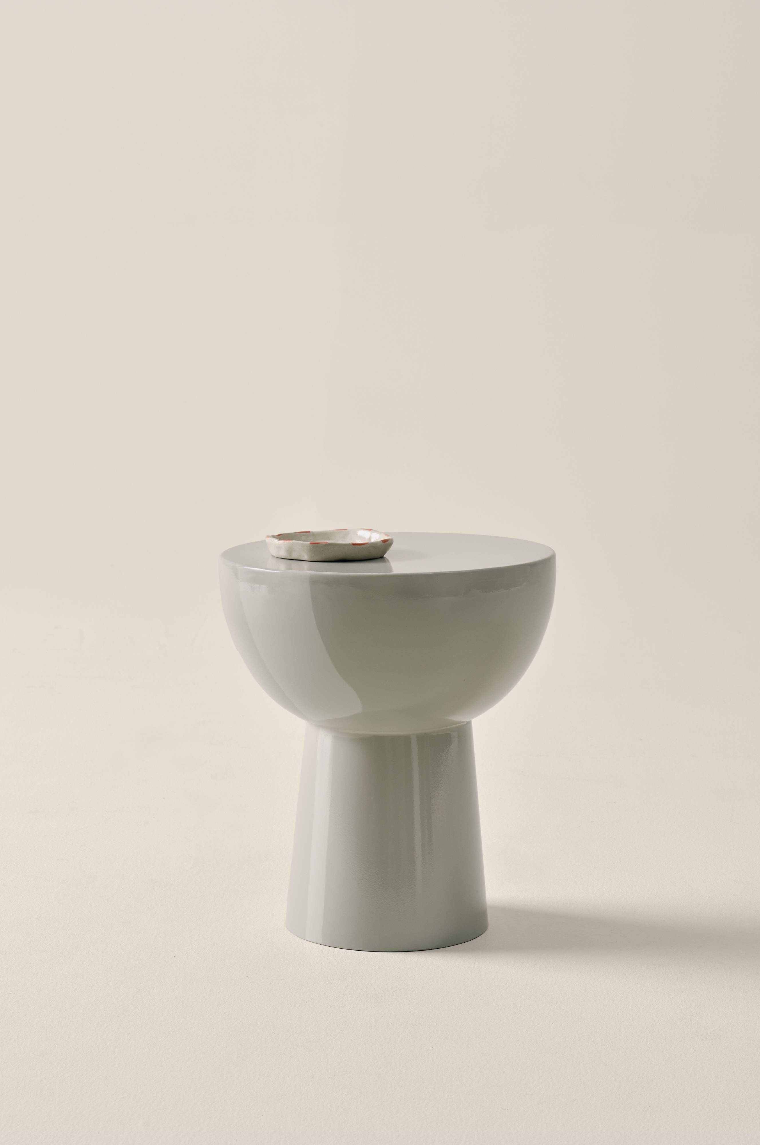 Rundt sidebord med højglanslakeret overflade. Det hule design er fremstillet af jern og giver praktisk funktionalitet uden at gå på kompromis med stilen. Fremstillet til indendørs brug.