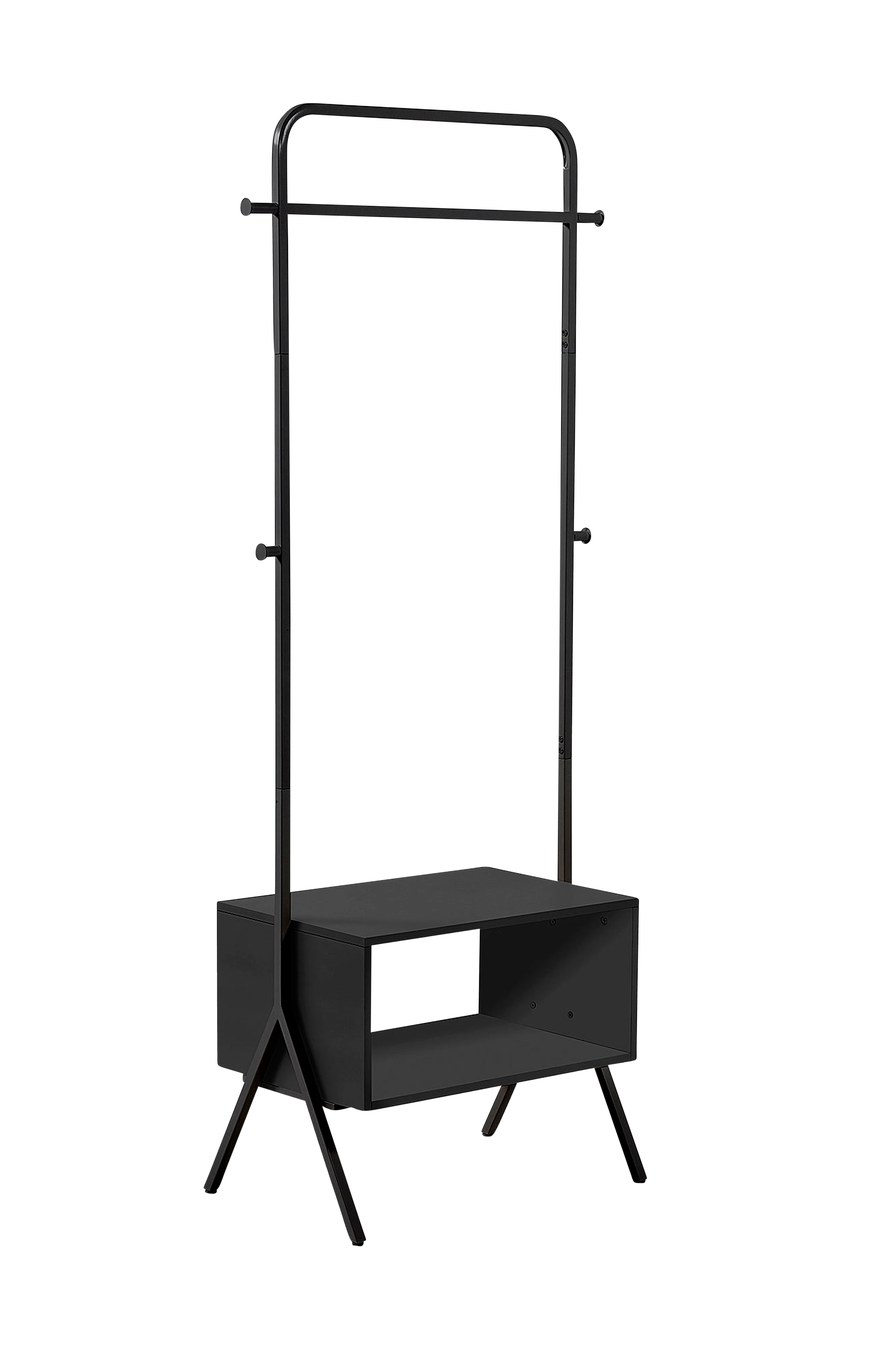Tøjstativ med stel af stål med en praktisk, sortmalet hylde forneden. Et stilrent tøjstativ, som gør det let og praktisk at organisere dit tøj og dine sko.