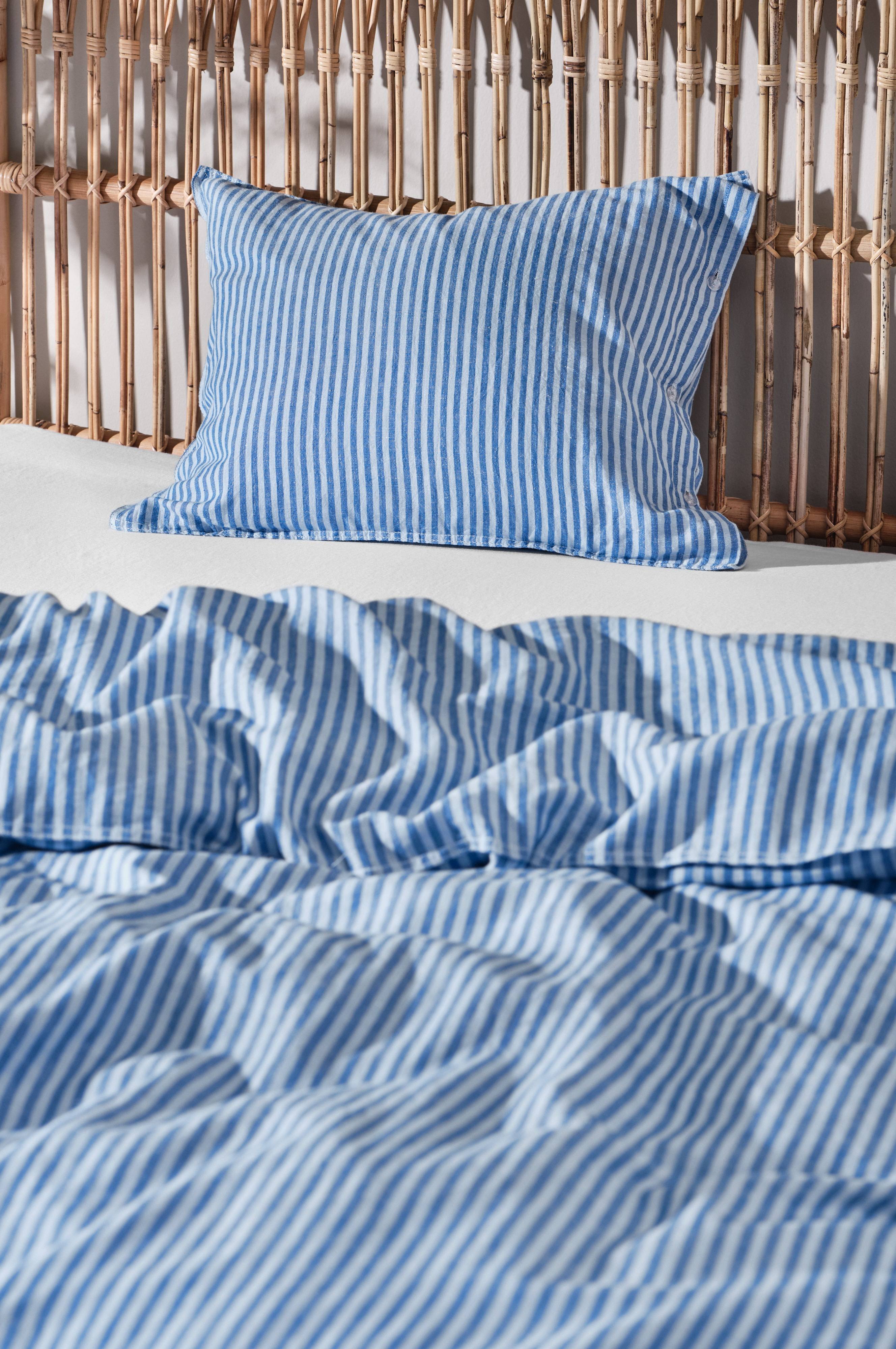 1-pak stribet pudebetræk i behagelig blanding af bomuld og hør. Sengetøj i serien BETLEY STRIPE er i en skøn kvalitet som samler fordelene fra både bomuld og hør, når du reder op med dem. De smalle striber går i to harmoniske farvenuancer. Pudebetrækket har dobbeltsøm som skaber en fin lille vinge rundt om. Lukkes med små plastknapper. Vægt 170 g/m². Trådtæthed på 74 tc. (Trådtætheden angiver antal tråde, Thread Count, pr. kvadrattomme i et stof. Jo højere trådtæthed desto højere kvalitet. Dog undtaget hør, der ofte væves løsere for at få det rette udtryk).