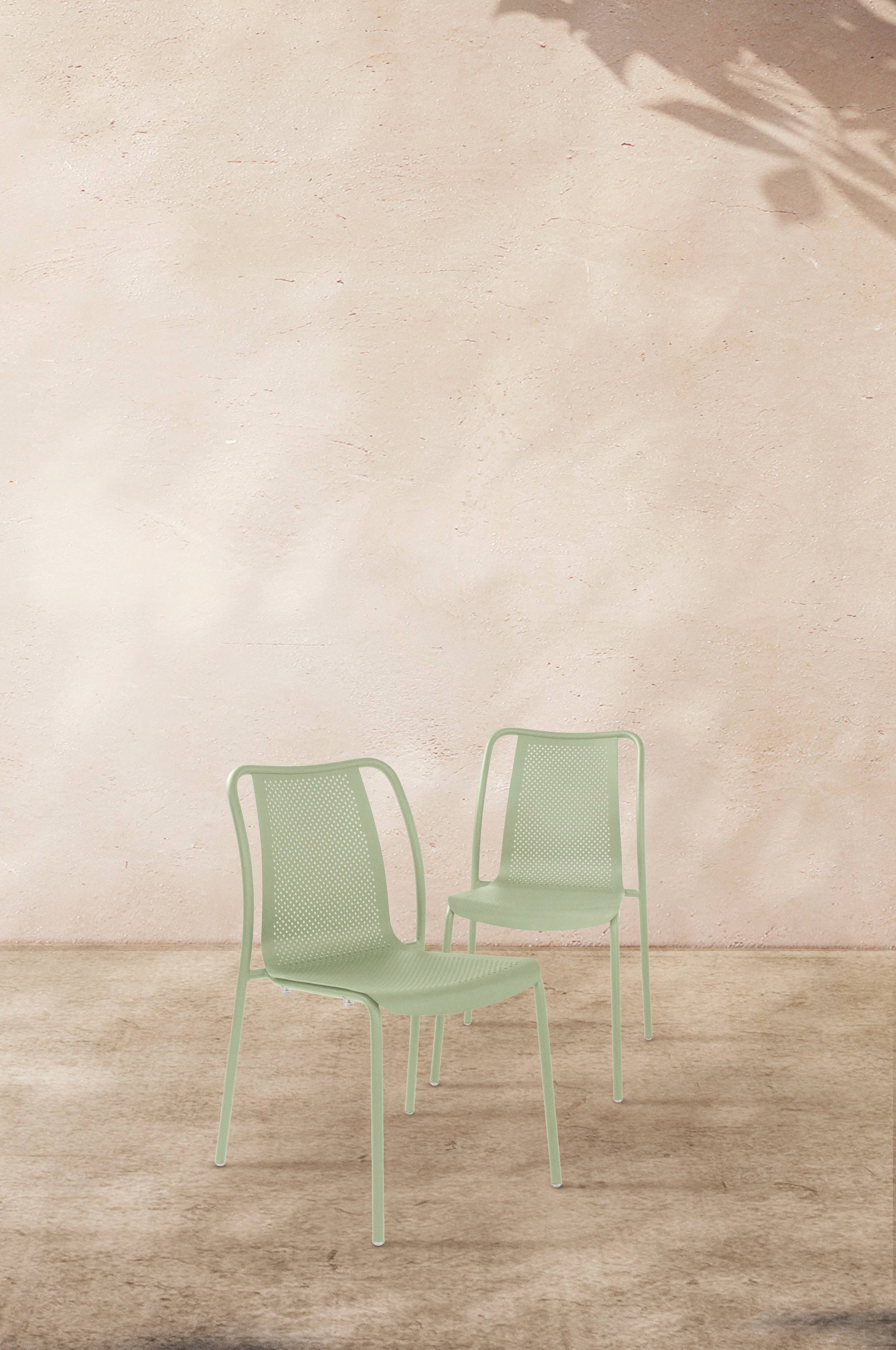 2-pak havestole af pulverlakeret aluminium med perforeret hulmønster i sædet. Overfladebehandlingen er mat og blænder ikke i stærkt lys. BIARRITZ er en enkel og stilren stol som passer perfekt rundt om havebordet. Aluminium har gode egenskaber som gør, at dette møbel passer fint udendørs, det rust ikke og vægten er lav. Stolen gør sig også godt indendørs. Stolene er stabelbare hvilket forenkler vinteropbevaringen. Opbevar gerne møblet indendørs under vinterhalvåret for at undgå unødig slitage.
