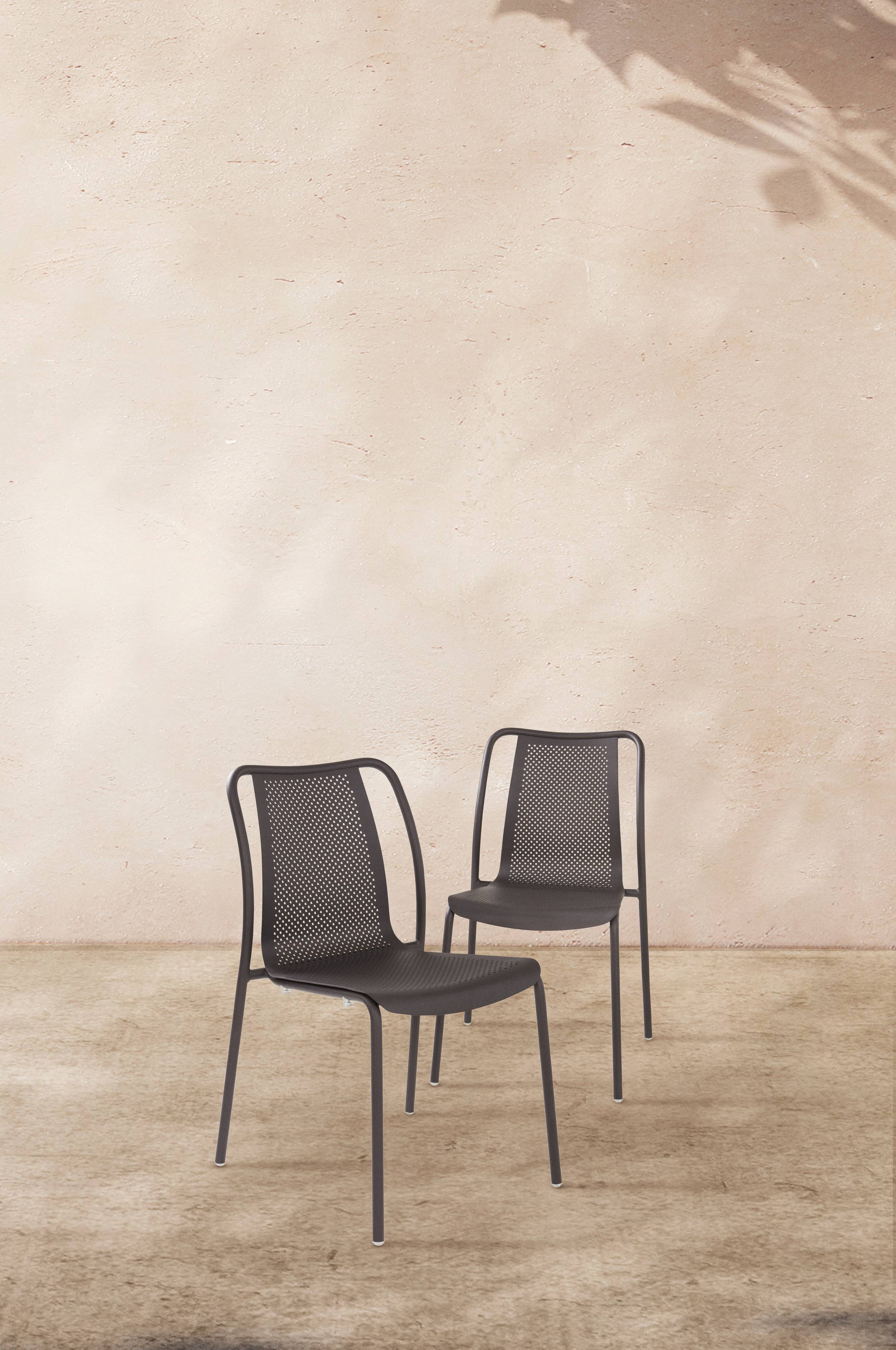 2-pak havestole af pulverlakeret aluminium med perforeret hulmønster i sædet. Overfladebehandlingen er mat og blænder ikke i stærkt lys. BIARRITZ er en enkel og stilren stol som passer perfekt rundt om havebordet. Aluminium har gode egenskaber som gør, at dette møbel passer fint udendørs, det rust ikke og vægten er lav. Stolen gør sig også godt indendørs. Stolene er stabelbare hvilket forenkler vinteropbevaringen. Opbevar gerne møblet indendørs under vinterhalvåret for at undgå unødig slitage.