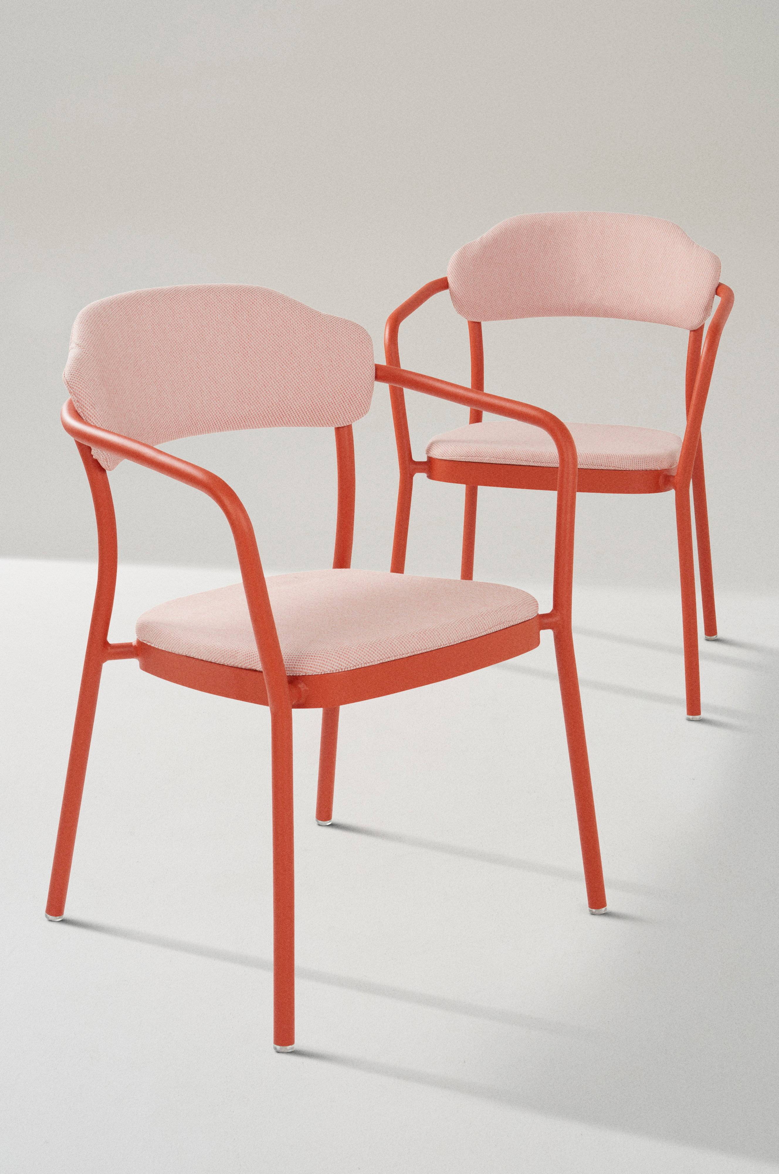 2-pak stole med armlæn af aluminium med betrukket og blødt vatteret sæde og ryglæn. Den behagelige stol er skøn at sidde i og nem at flytte rundt. Stellet har en pulverlakeret finish med en mat farve, der ikke skinner og blænder i skarpt lys. Stoffet er vandafvisende og både sæde og ryglæn har et blødt skumfyld, der er hurtigtørrende og vandafvisende, såkaldt Quick dry foam. BIDART tåler at stå udendørs, aluminium ruster ikke og er nemt at tørre af. Stolene er stabelbare hvilket forenkler vinteropbevaringen. Opbevar gerne møblet indendørs under vinterhalvåret for at undgå unødig slitage.