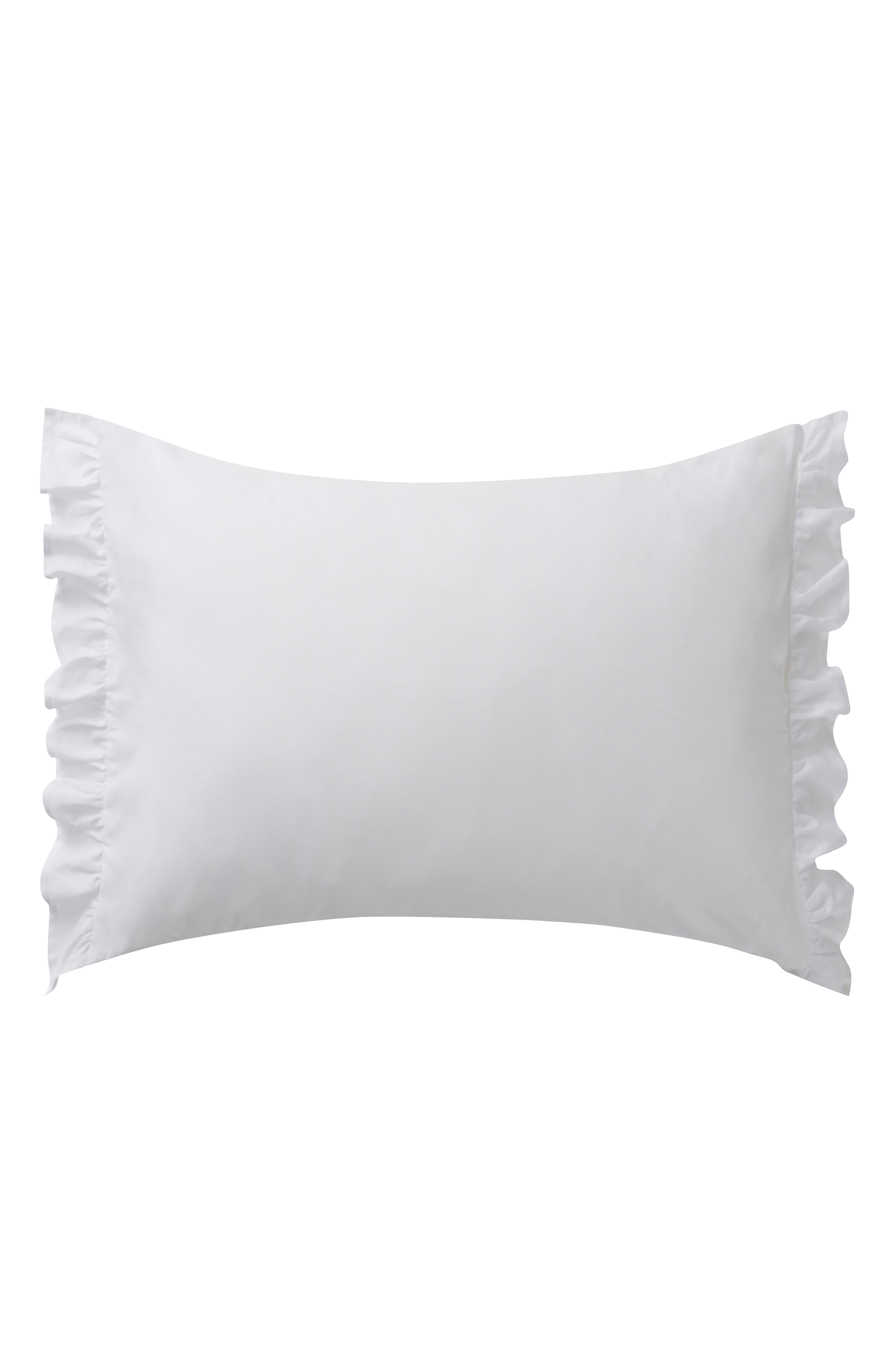 1-pak pudebetræk i økologisk bomuld med dekorativ flæsekant. Bomuldssengetøj er luftigt og blødt mod kroppen.