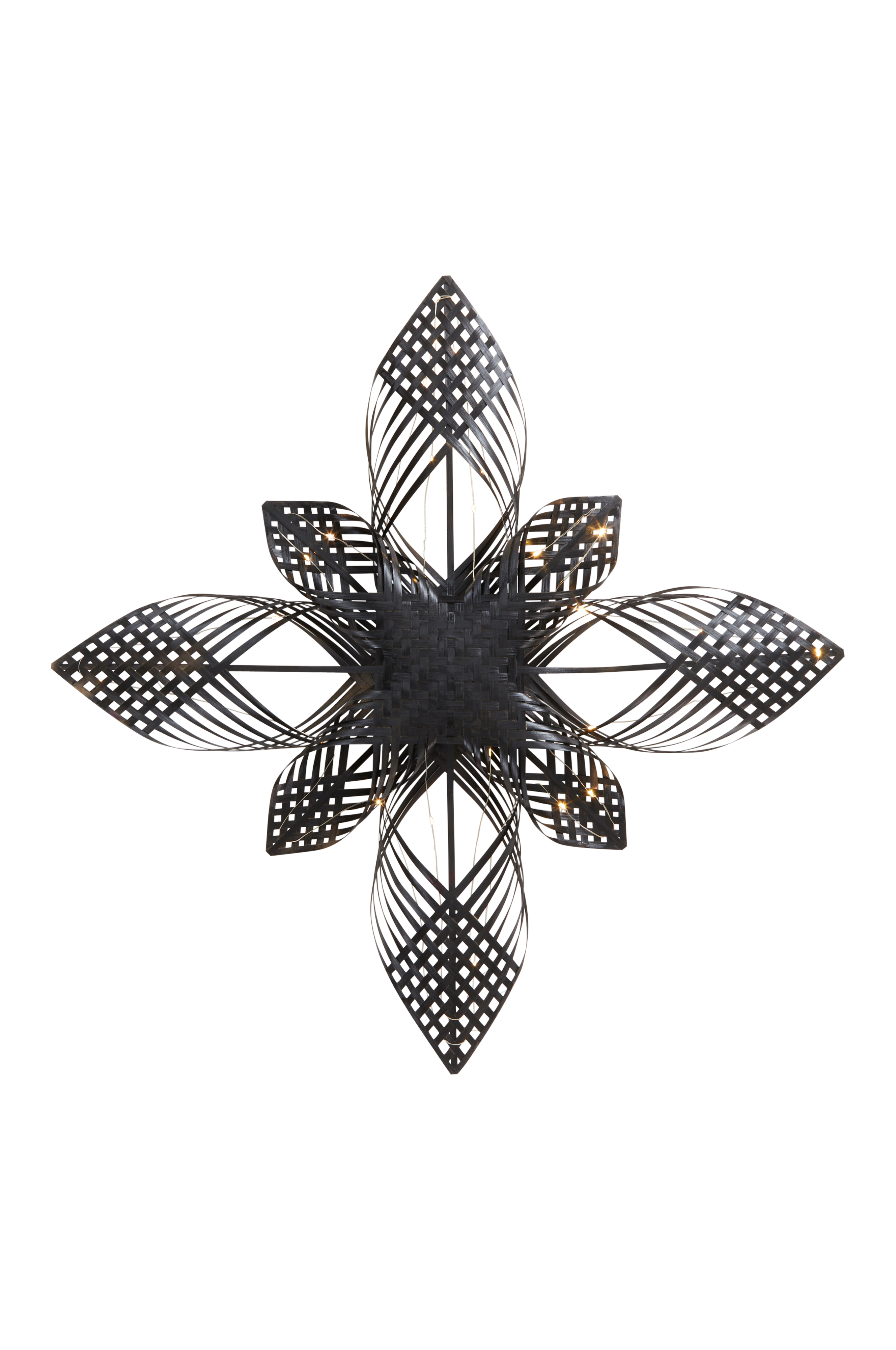 Håndlavet julestjerne af bambus med 25 små LED-pærer som lyser fint. Drives af 3 stk. AA-batteri. Batterier medfølger ikke.