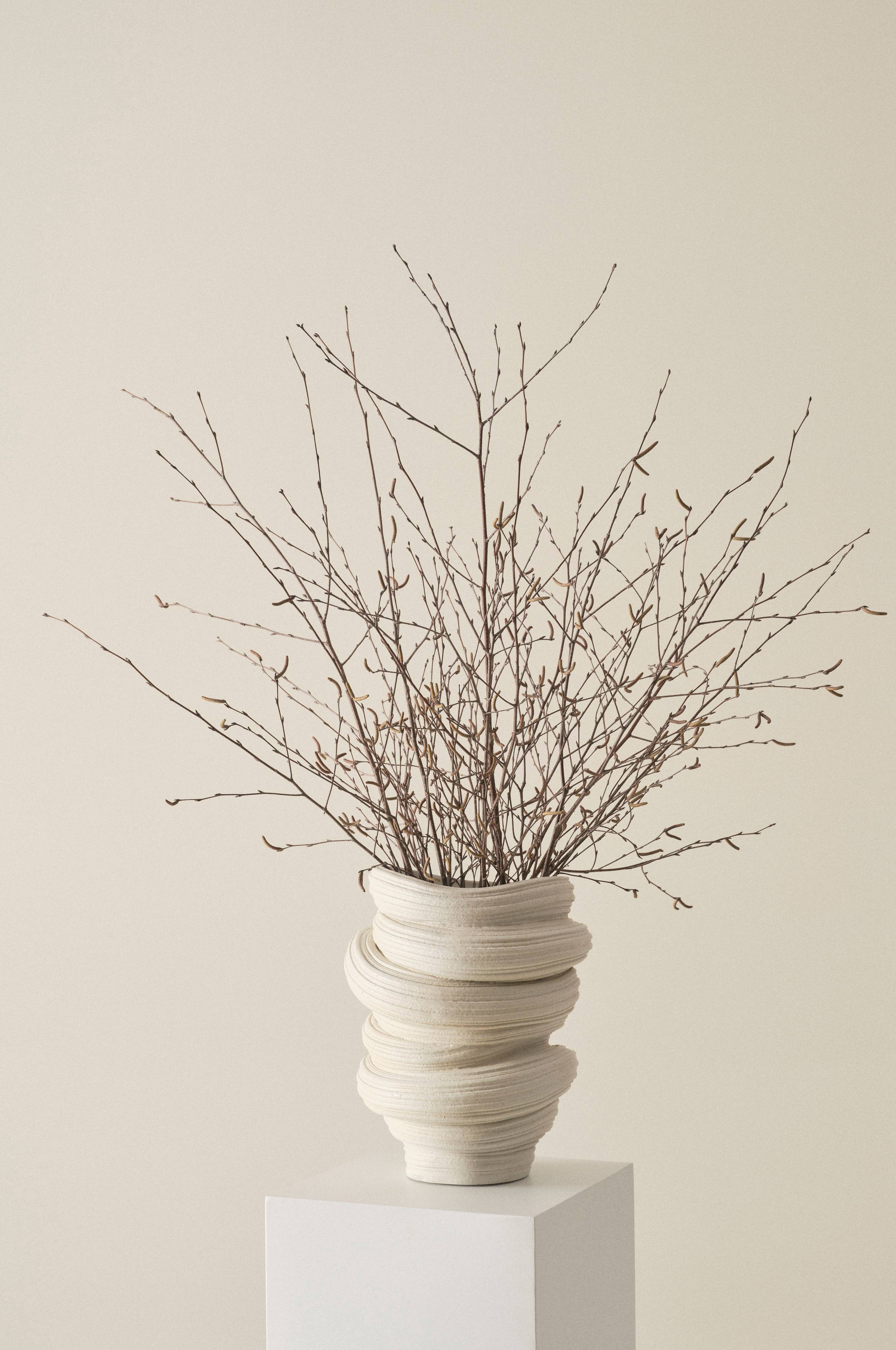 Indret med dekorativt birkris. Sælges i bundt. Vase medfølger ikke.