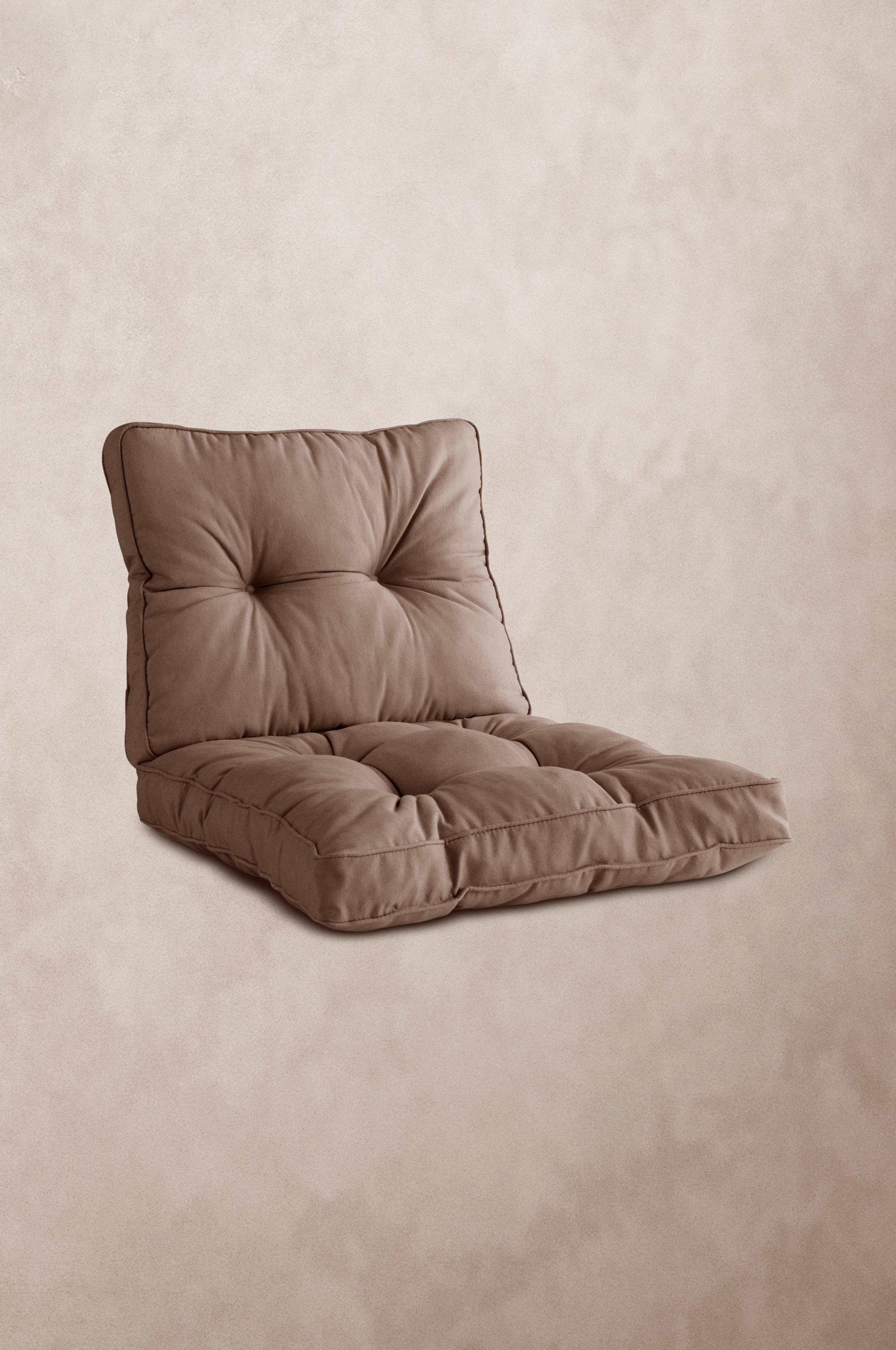 Hyndesæt til udendørs møbler. Sættet består af en hynde og en pude. Hyndesættet er betrukket med bomuld, polyester og genbrugsfibre med flokfyld. Hyndesættet passer til lænestolen i BOLONIA loungemøbler.