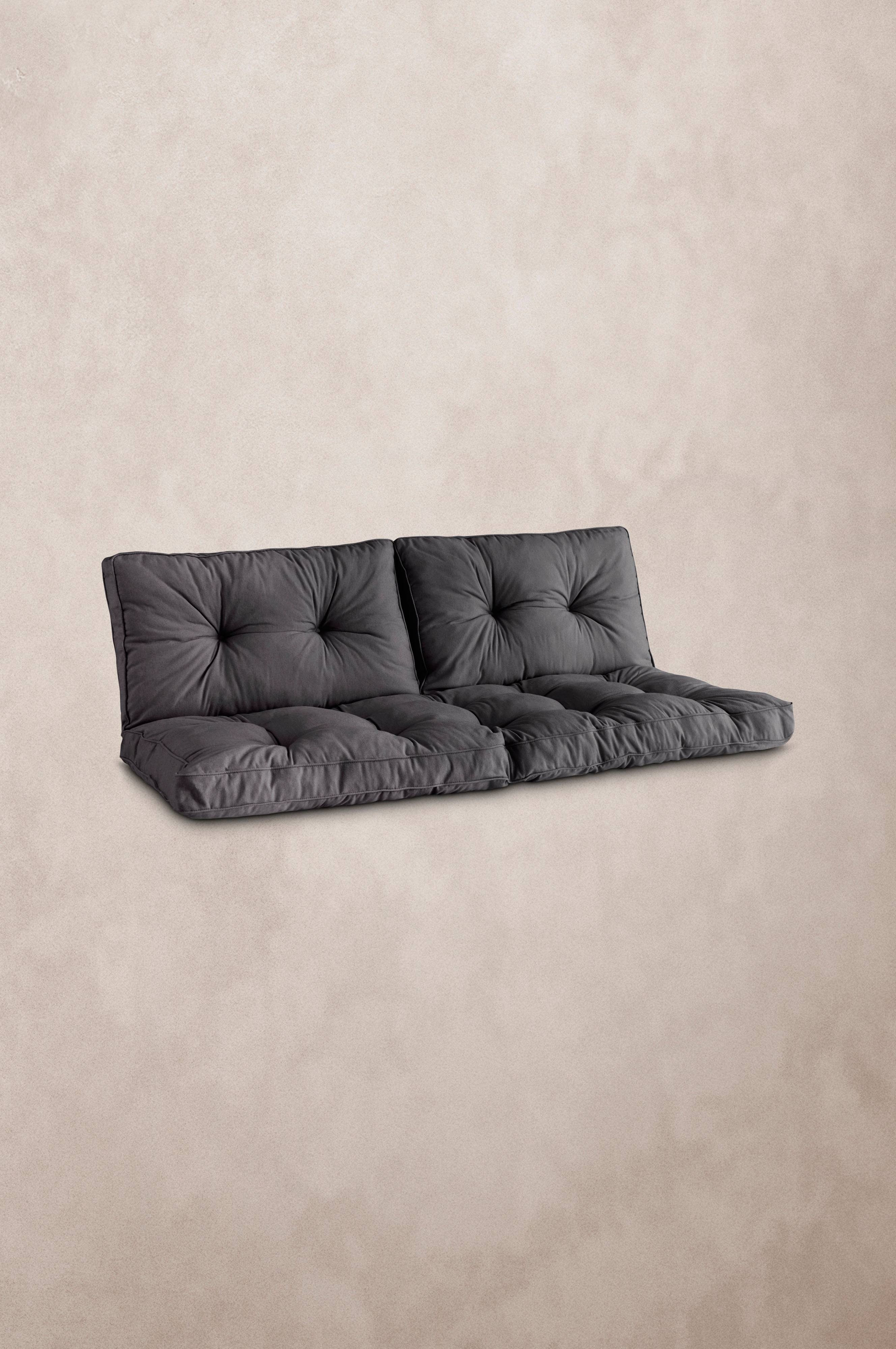Hyndesæt til udendørs møbler. Sættet indeholder en hynde og to puder. Hynden og puderne er dejligt bløde og tykke. Betræk af bomuld, polyester og genbrugsfibre samt flokfyld. Hyndesættet passer til sofaen i BOLONIA-loungemøblerne.