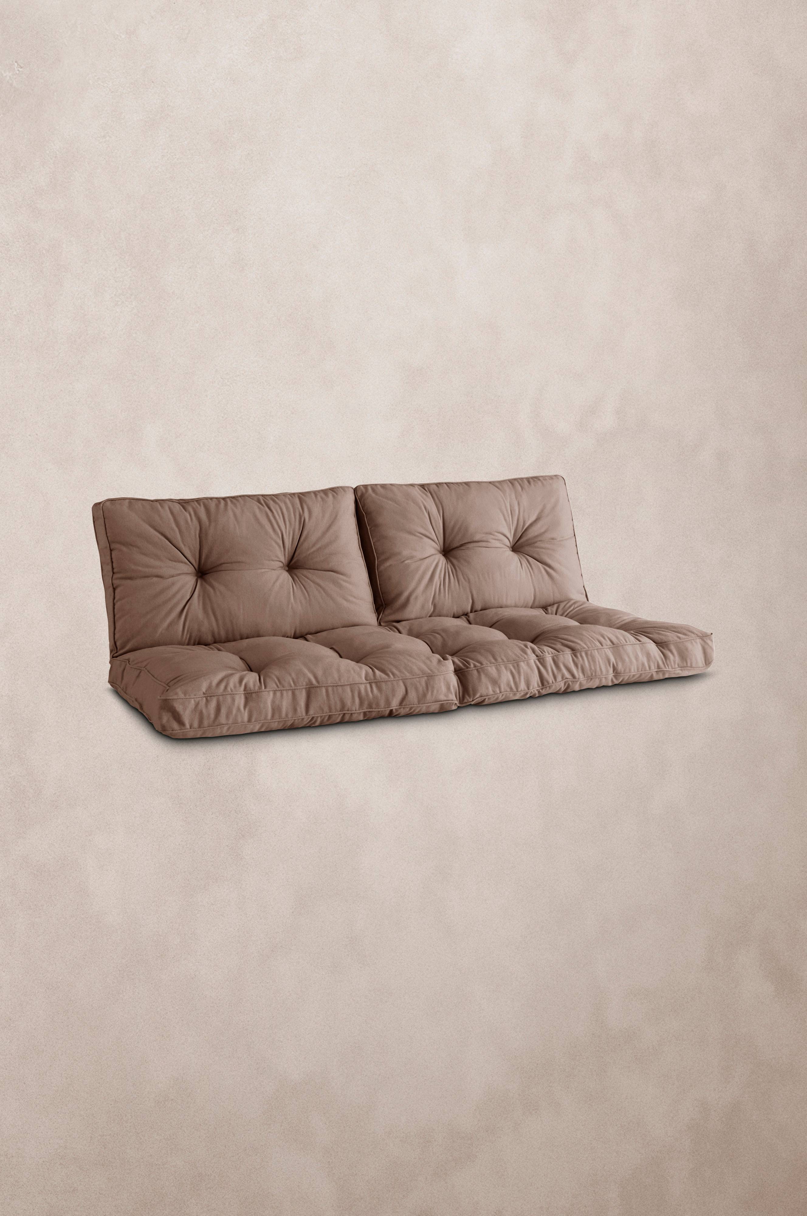 Hyndesæt til udendørs møbler. Sættet indeholder en hynde og to puder. Hynden og puderne er dejligt bløde og tykke. Betræk af bomuld, polyester og genbrugsfibre samt flokfyld. Hyndesættet passer til sofaen i BOLONIA-loungemøblerne.