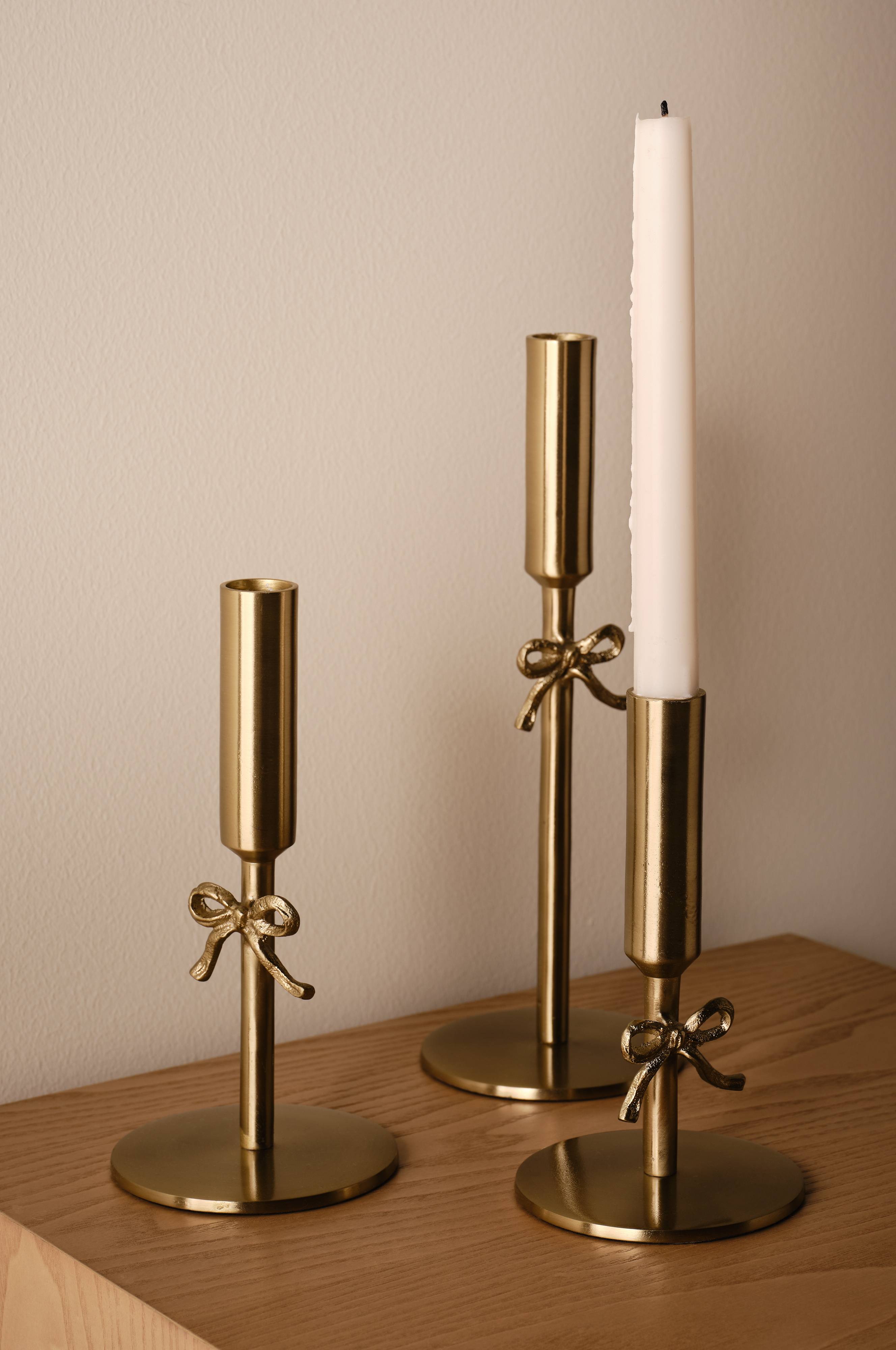 BOWY-lysestagesættet tilfører charme med sit elegante metaldesign og dekorative sløjfe. Dette sæt med tre lysestager er perfekt til at skabe en elegant atmosfære og forbedrer ethvert interiør med sin tidløse stil. Perfekt til at give din indretning et strejf af elegance.