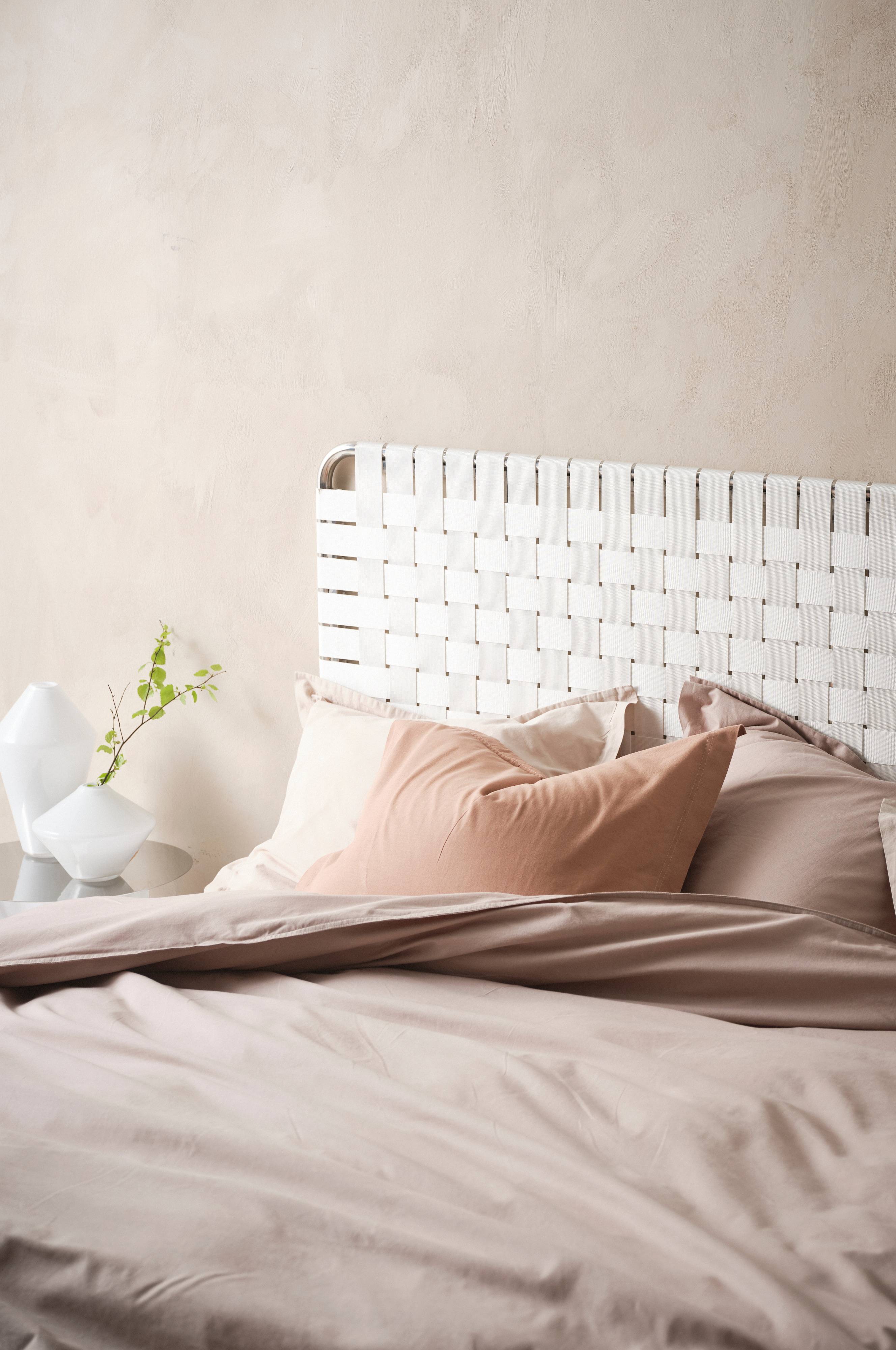 BREMEN er en trendy sengegavl med forkromede rør som stel og flettet sadelgjord af polyester. Stellet har flot afrundede hjørner og rørene er af jern og rustfrit stål. Sengegavlen placeres mellem væggen og din seng. Vægbeslag medfølger.
