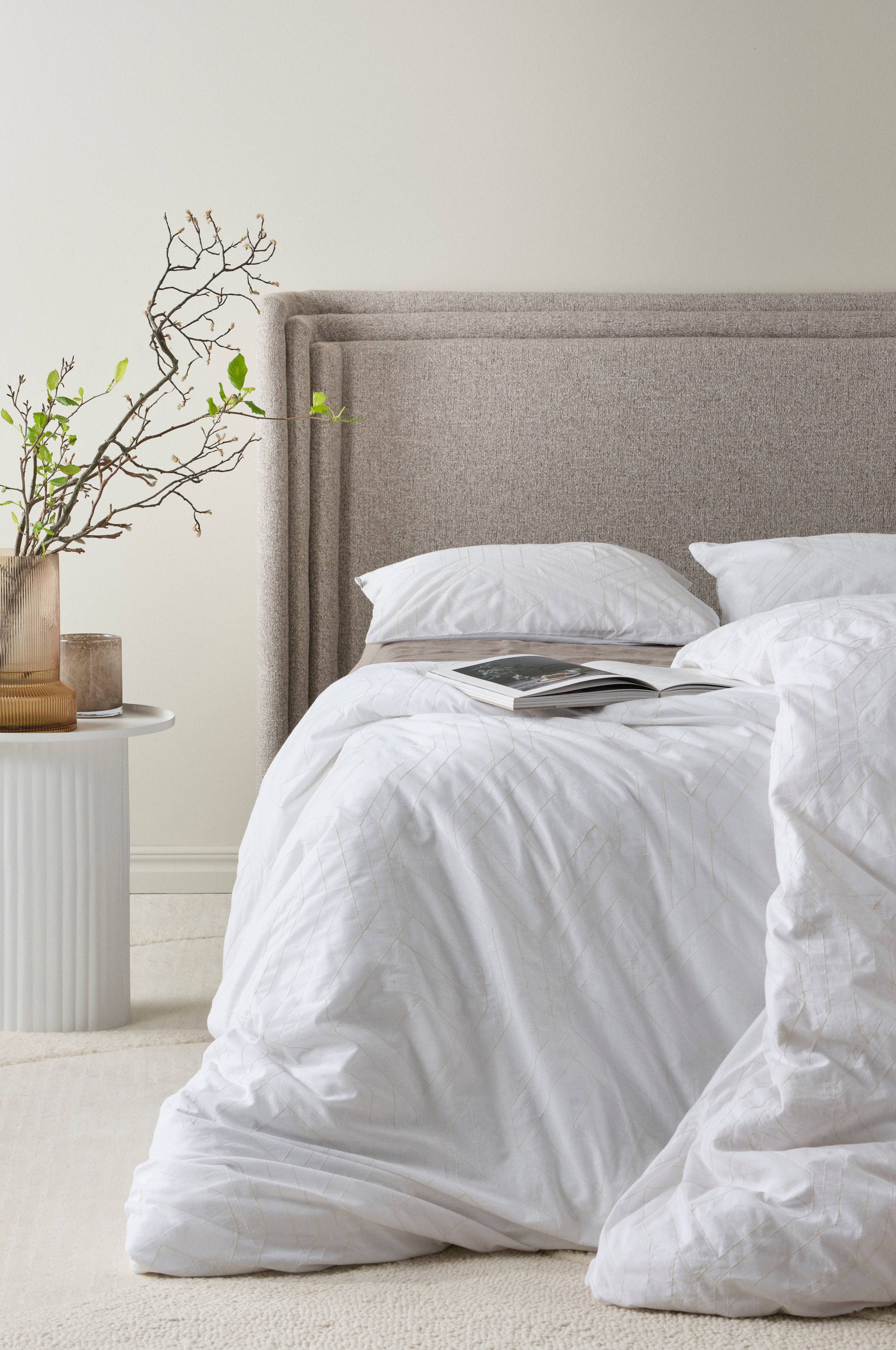 Dynebetræk i behagelig bomuld. Dynebetrækket har broderet mønster med tynd tråd i nærliggende farve, som giver et fint, diskret mønster. Bagsiden er ensfarvet i samme stof som forsiden. Bomuld er behageligt at sove i, opleves svalt og blødt mod huden. Åbning i de øverste hjørner på dynebetrækket, så det er nemt at trække dynebetrækket over dynen. Lukkes med lynlås. Trådtæthed på 144 tc. (Trådtætheden angiver antal tråde, Thread Count, pr. kvadrattomme i et stof. Jo højere trådtæthed desto højere kvalitet.)