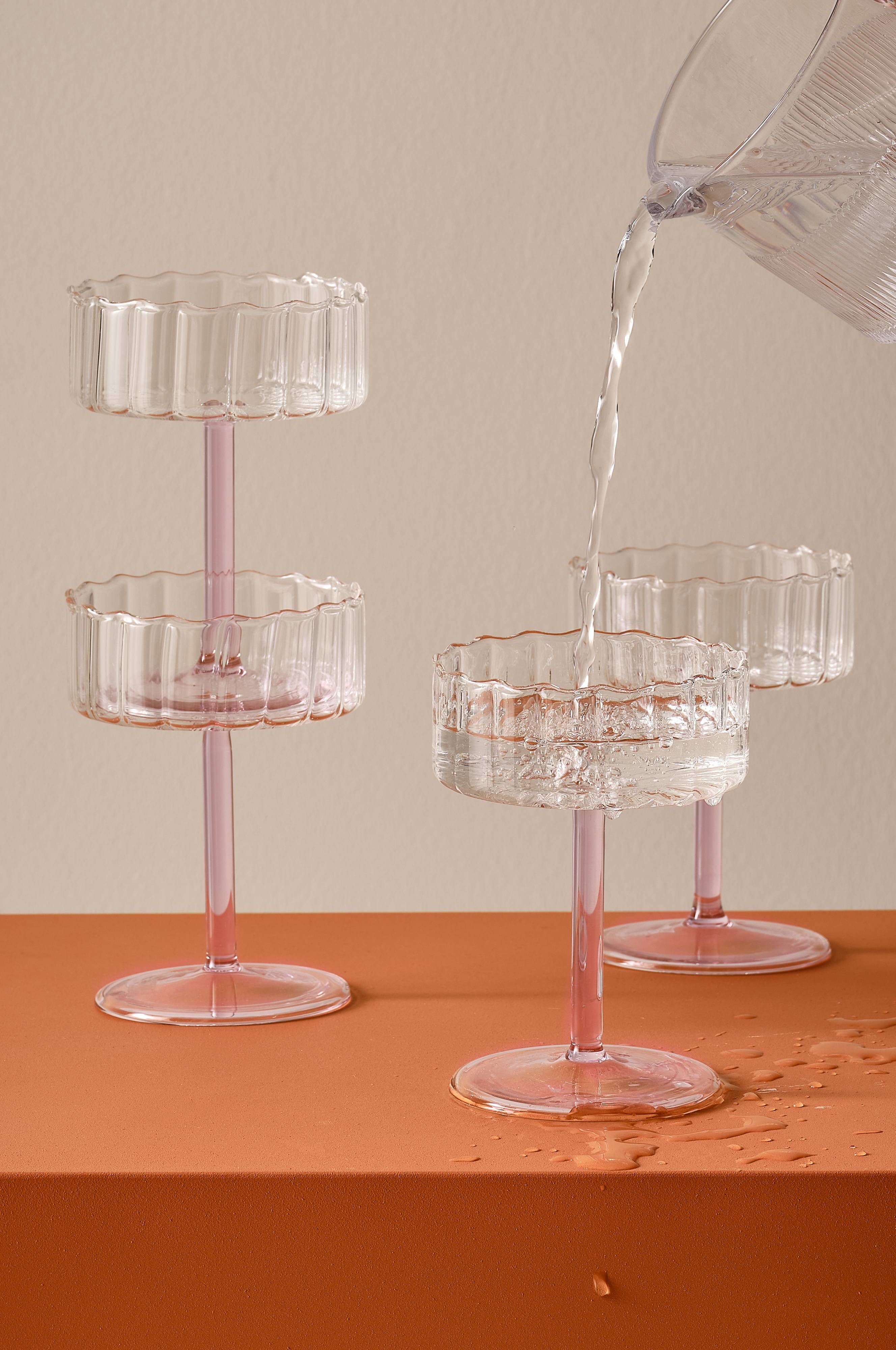 4-pak cocktailglas som er flotte til forårsdrinken. Cocktailglassene har en smal fod og et diagonalt stribet reliefmønster i koppen, som er lavet af klart glas.