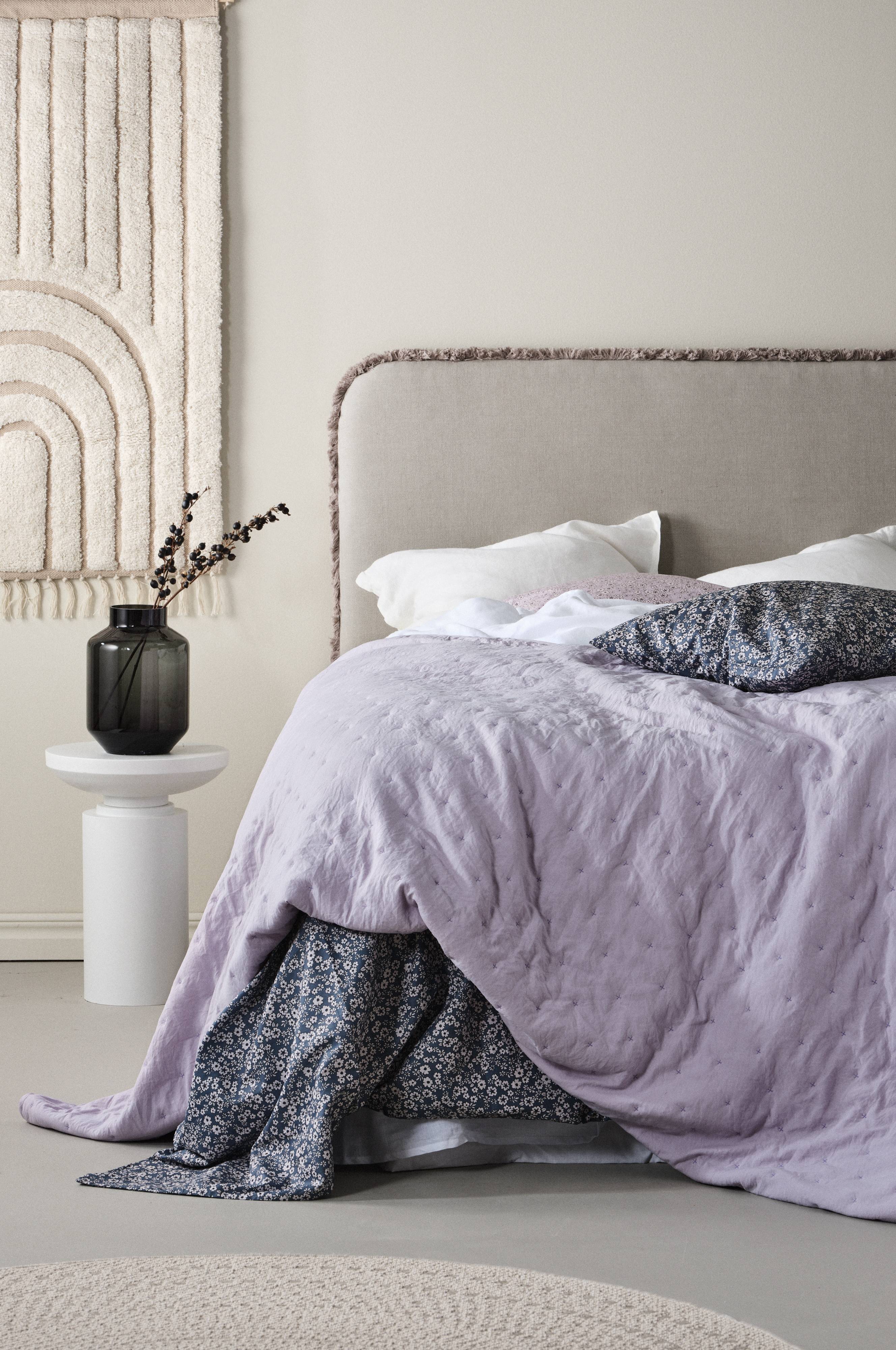 Sengetæppet er let, så det er nemt at rede en dobbeltseng. Dejligt blødt.