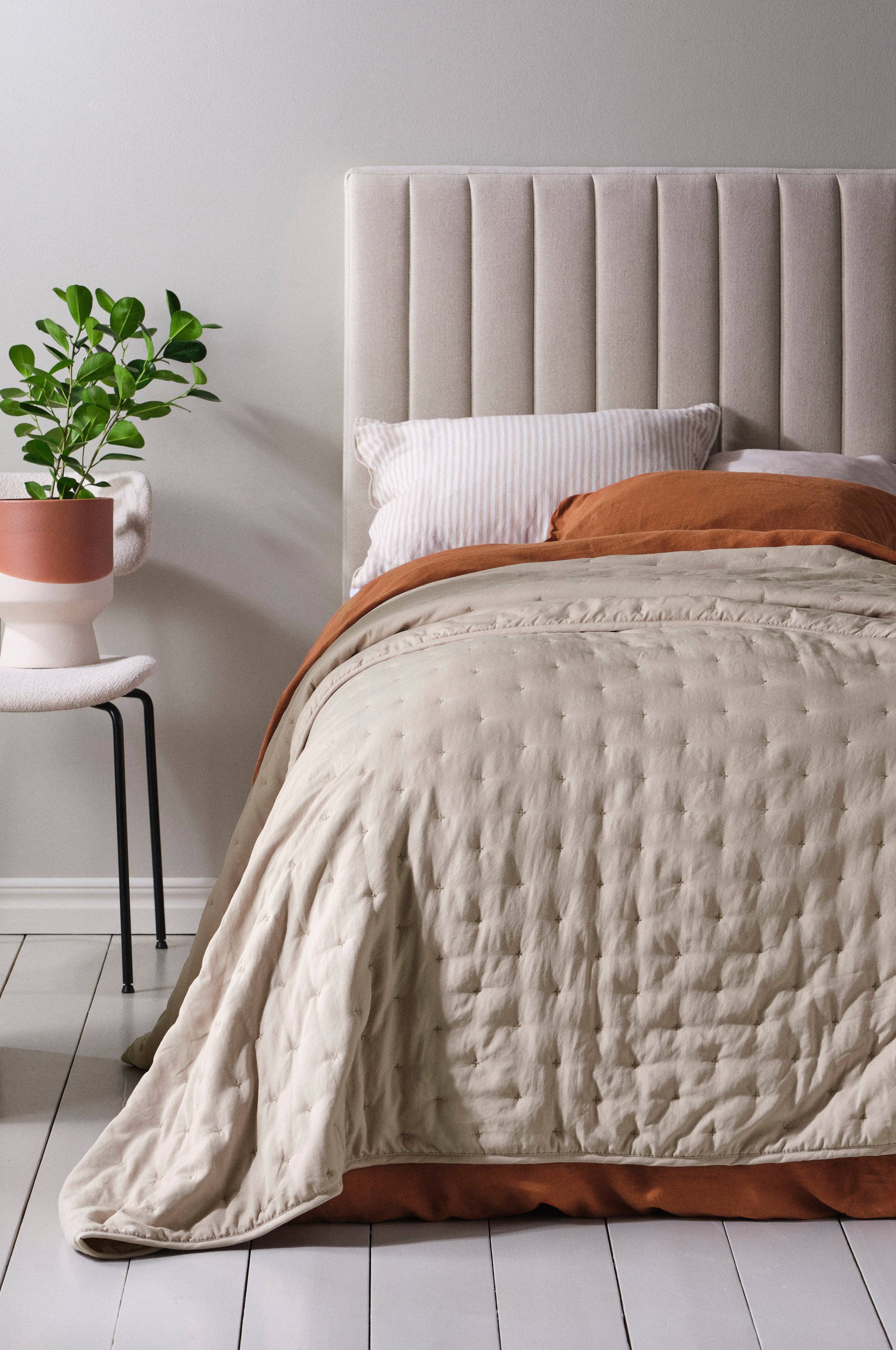 Tip/råd: CALM sengetæppet giver et blødt og afslappet sengetøj, forstærk følelsen med mange ekstra puder, når du reder sengen.