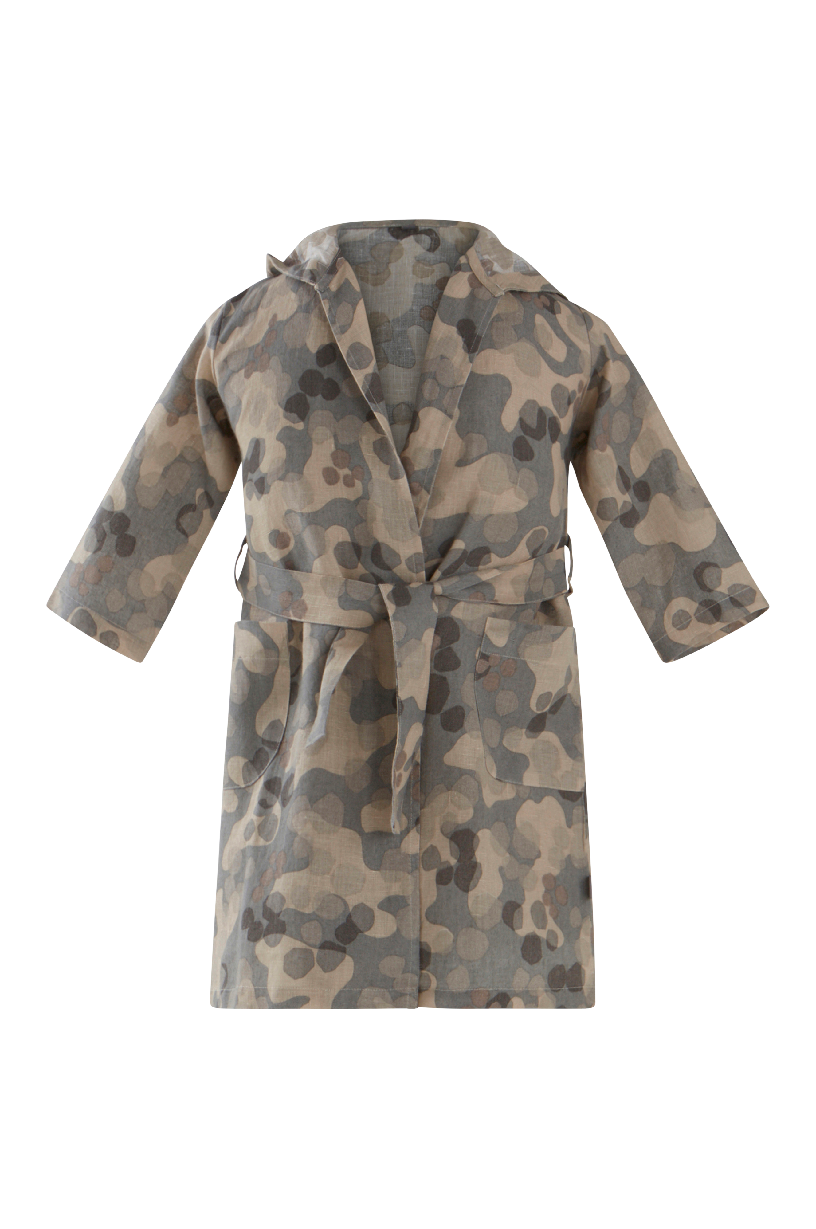Badekåbe af naturligt og behageligt hør med printet mønster designet af Maria Carlberg. Den skønne hørkvalitet er vasket, så den bliver dejlig blød og skøn. Hyggelig model med bindebælte i taljen og to forlommer. Vægt 160 g/m². Trådtæthed på 94 tc. (Trådtætheden angiver antal tråde, Thread Count, pr. kvadrattomme i et stof. Jo højere trådtæthed desto højere kvalitet. Dog undtaget hør, der ofte væves løsere for at få det rette udtryk).