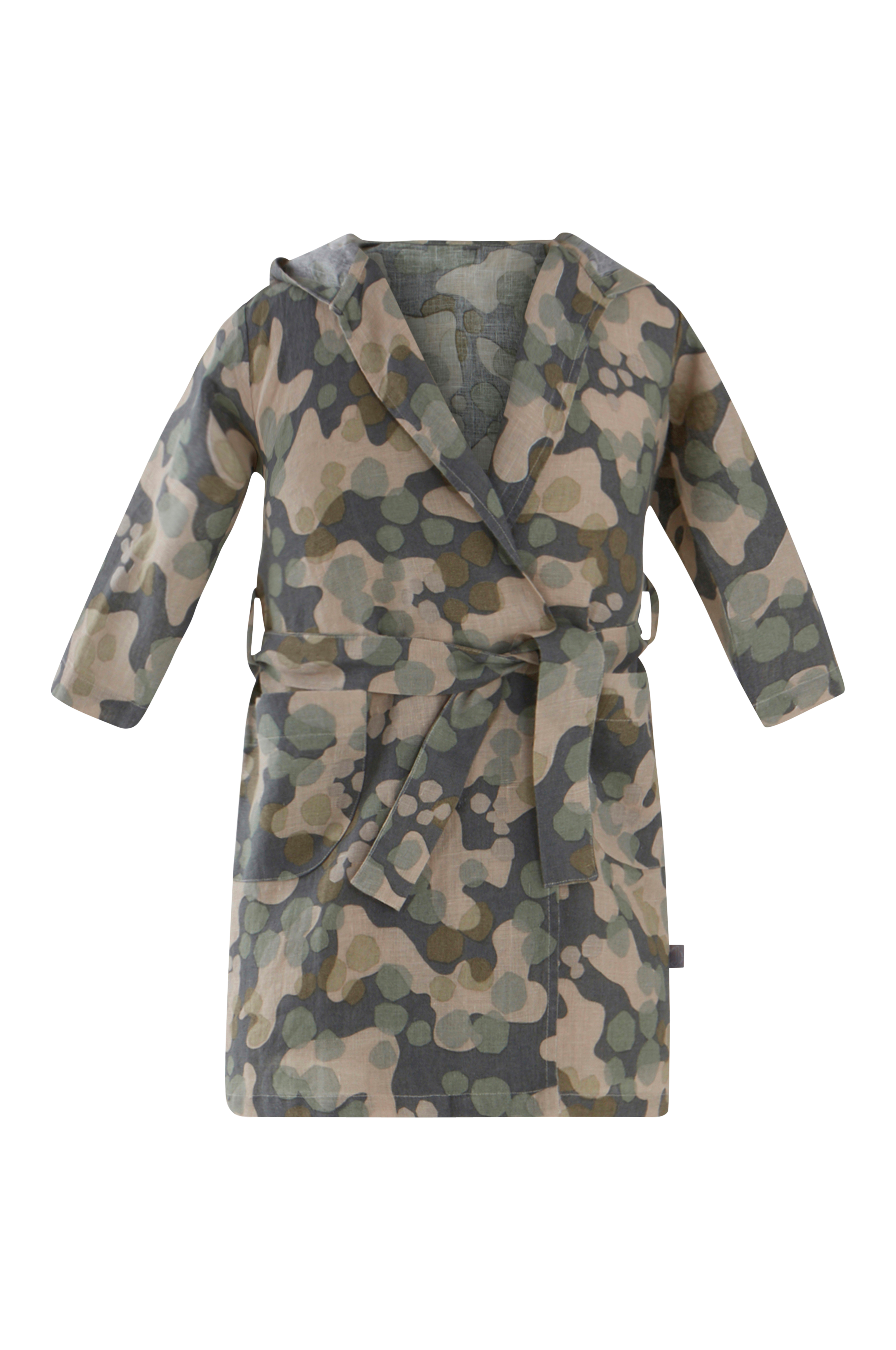 Badekåbe af naturligt og behageligt hør med printet mønster designet af Maria Carlberg. Den skønne hørkvalitet er vasket, så den bliver dejlig blød og skøn. Hyggelig model med bindebælte i taljen og to forlommer. Vægt 160 g/m². Trådtæthed på 94 tc. (Trådtætheden angiver antal tråde, Thread Count, pr. kvadrattomme i et stof. Jo højere trådtæthed desto højere kvalitet. Dog undtaget hør, der ofte væves løsere for at få det rette udtryk).