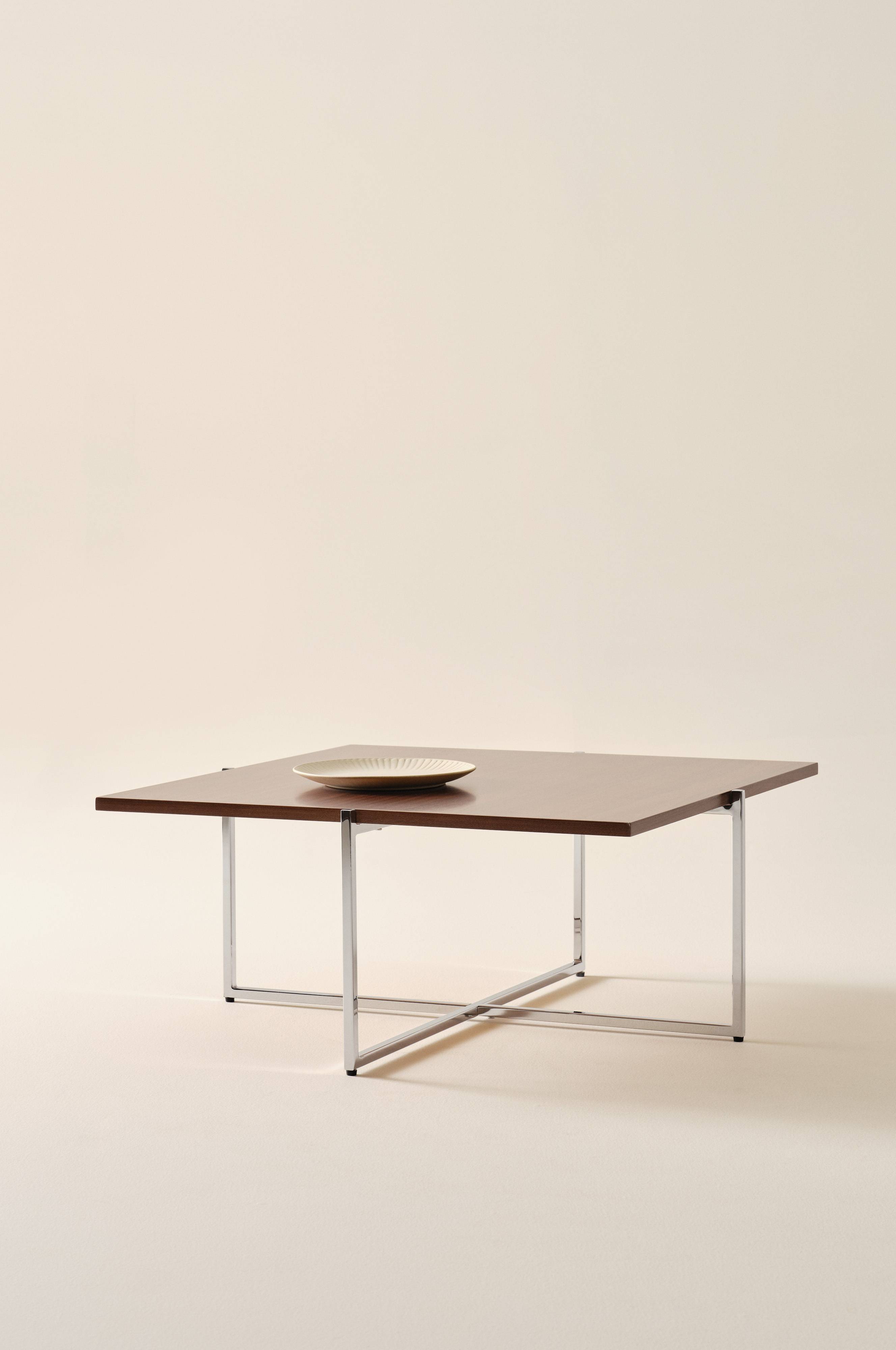 En stilfuld tilføjelse til ethvert moderne hjem. Bordpladen er fremstillet af MDF med valnøddefinér, der udstråler varme og raffinement. Forkromede jernben giver elegant støtte og moderne flair. Dette sofabord er perfekt til at løfte din bolig og forener funktion og æstetik uden problemer.