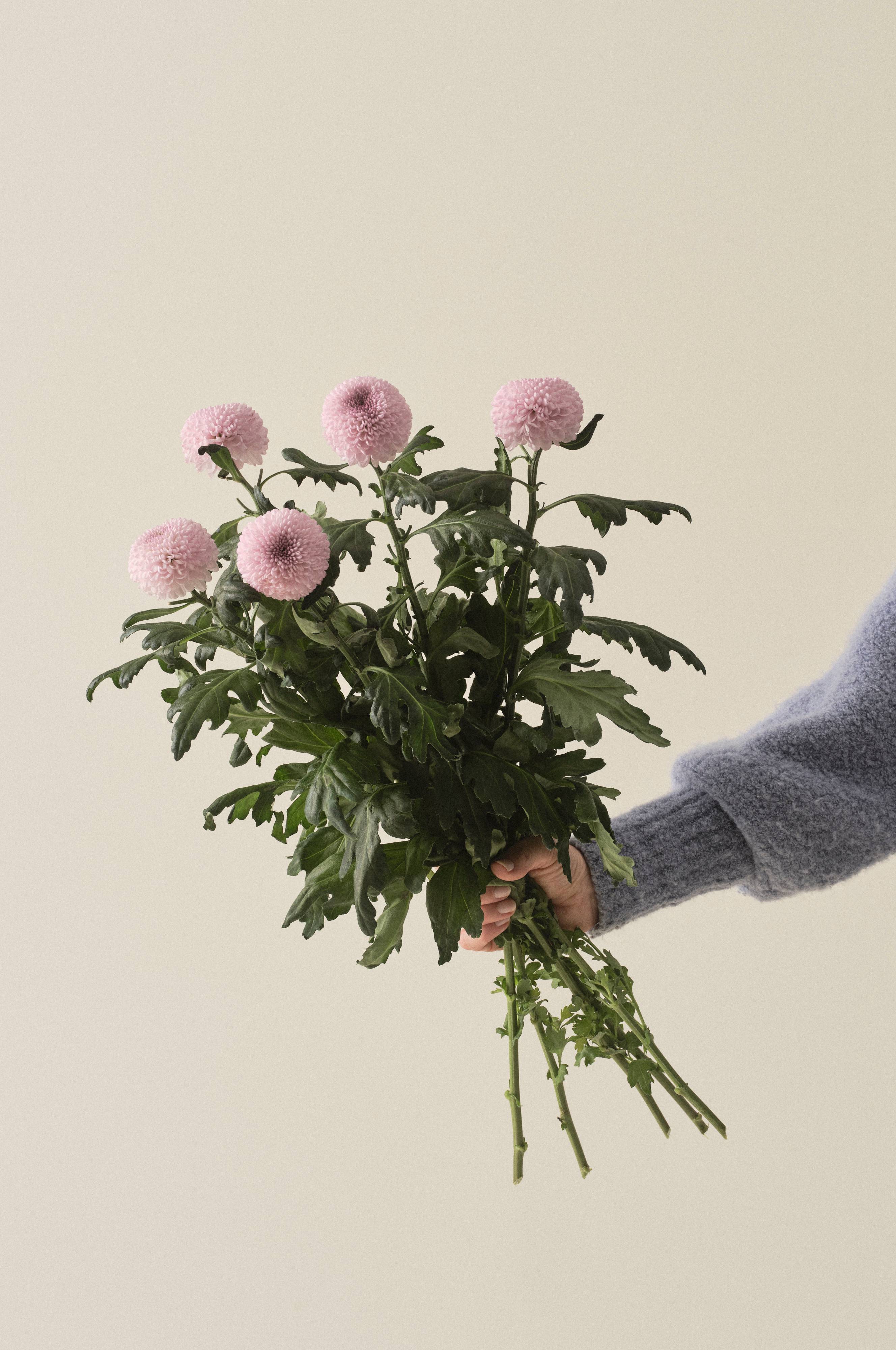 Dekorativ chrysantemum med lang holdbarhed, sælges i pakke med 5 stk. Duft: Ingen.