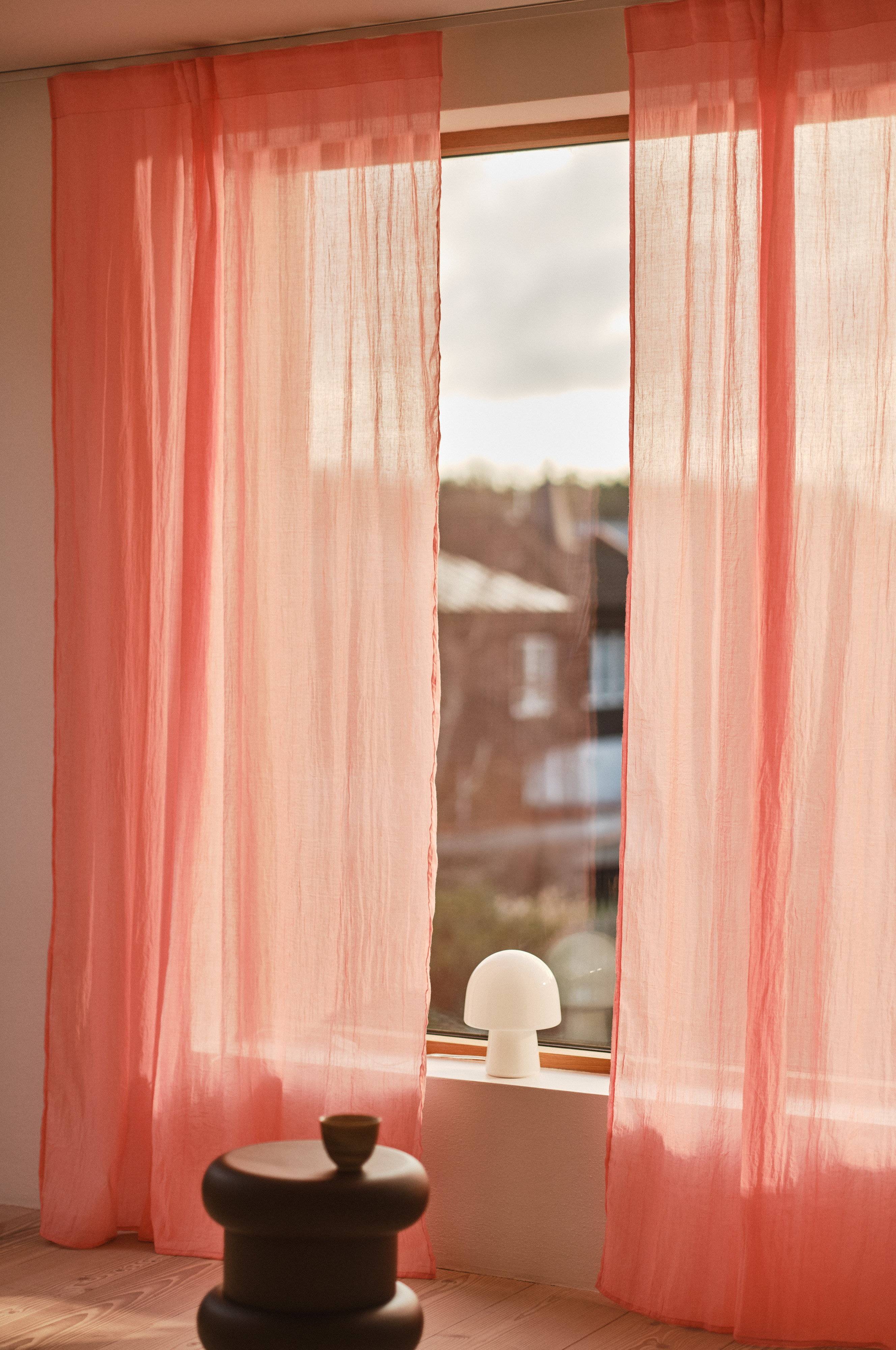 To gardinlængder i stof, der giver et flot fald. De ensfarvede gardinlængder findes i flere farver, som gør det nemt at matche pænt.