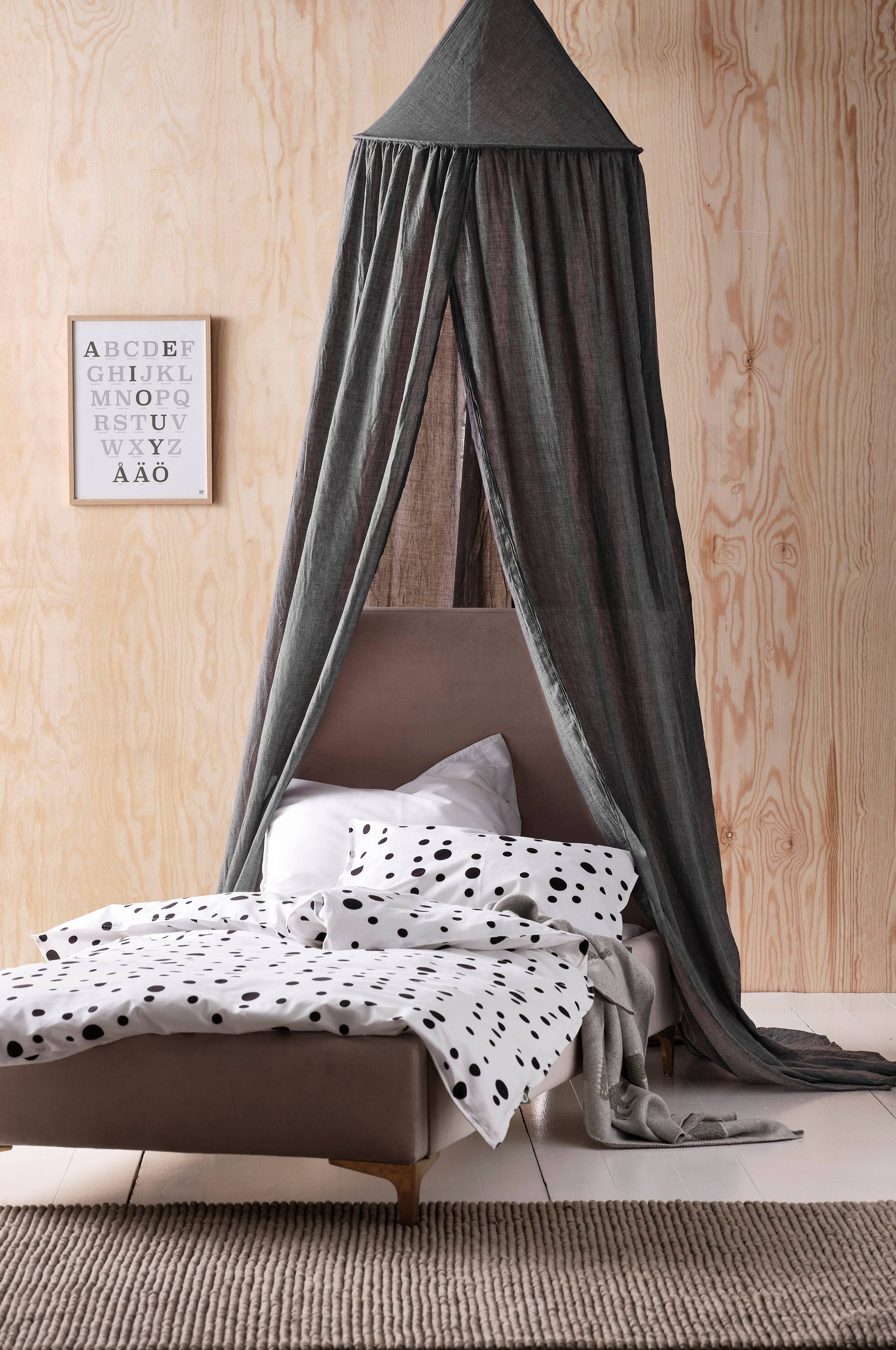Sengehimmel fremstillet i blød bomuldsblanding som giver et fint fald. Denne sengehimmel er åben både foran og bagpå, hvilket er en fordel, hvis du vil have en sengelampe på væggen bag sengen. Hæng sengehimlen op i børneværelset over børnesengen for at skabe en hyggelig og indbydende atmosfære.
