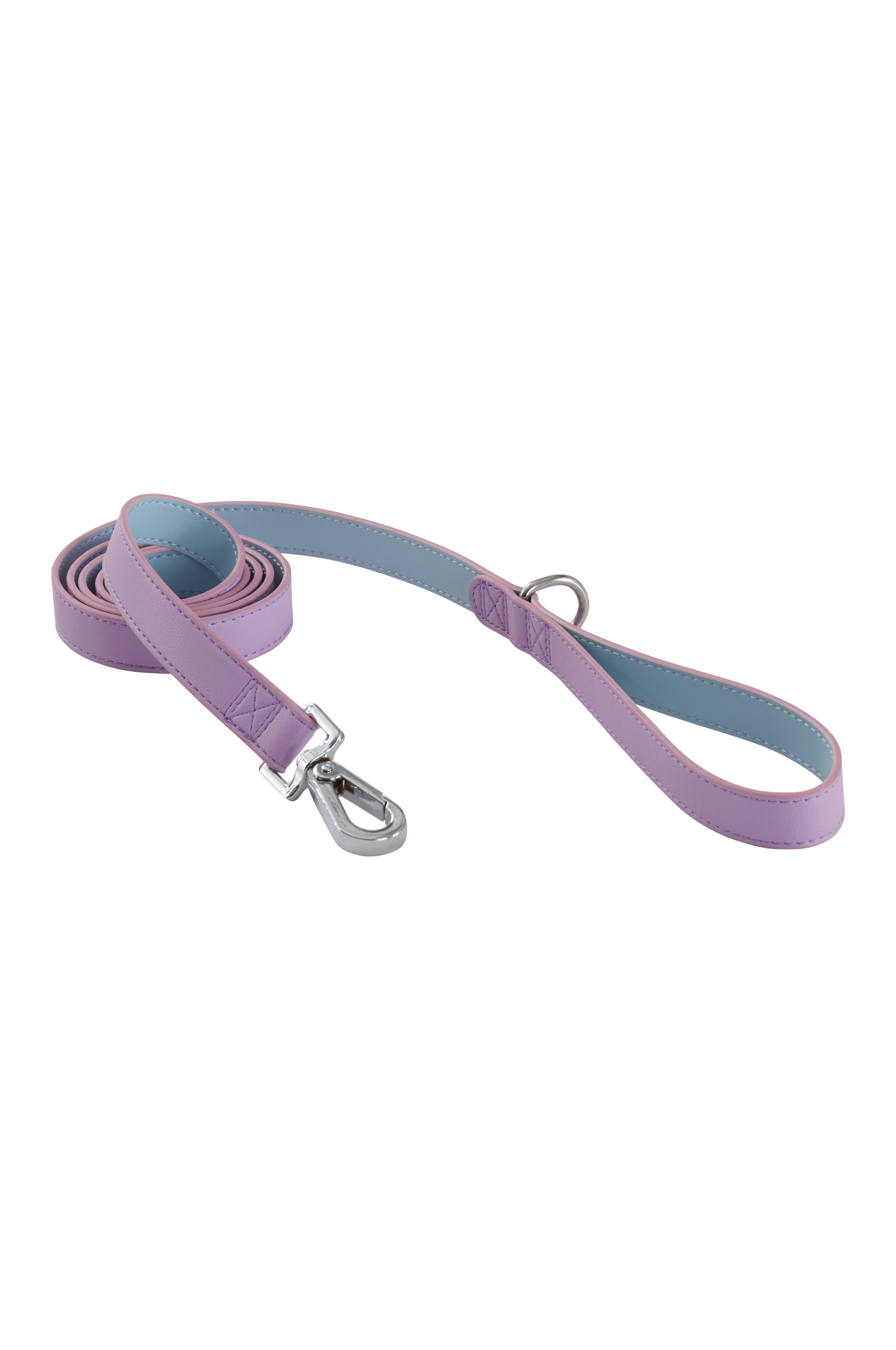 Snor til hund eller kat. Snoren er i imiteret læder af polyuretan med blødt for af microfiber. Hægten og ringen er i sølvfarvet zinklegering. På ringen kan du f.eks. fastgøre en hundepose.
