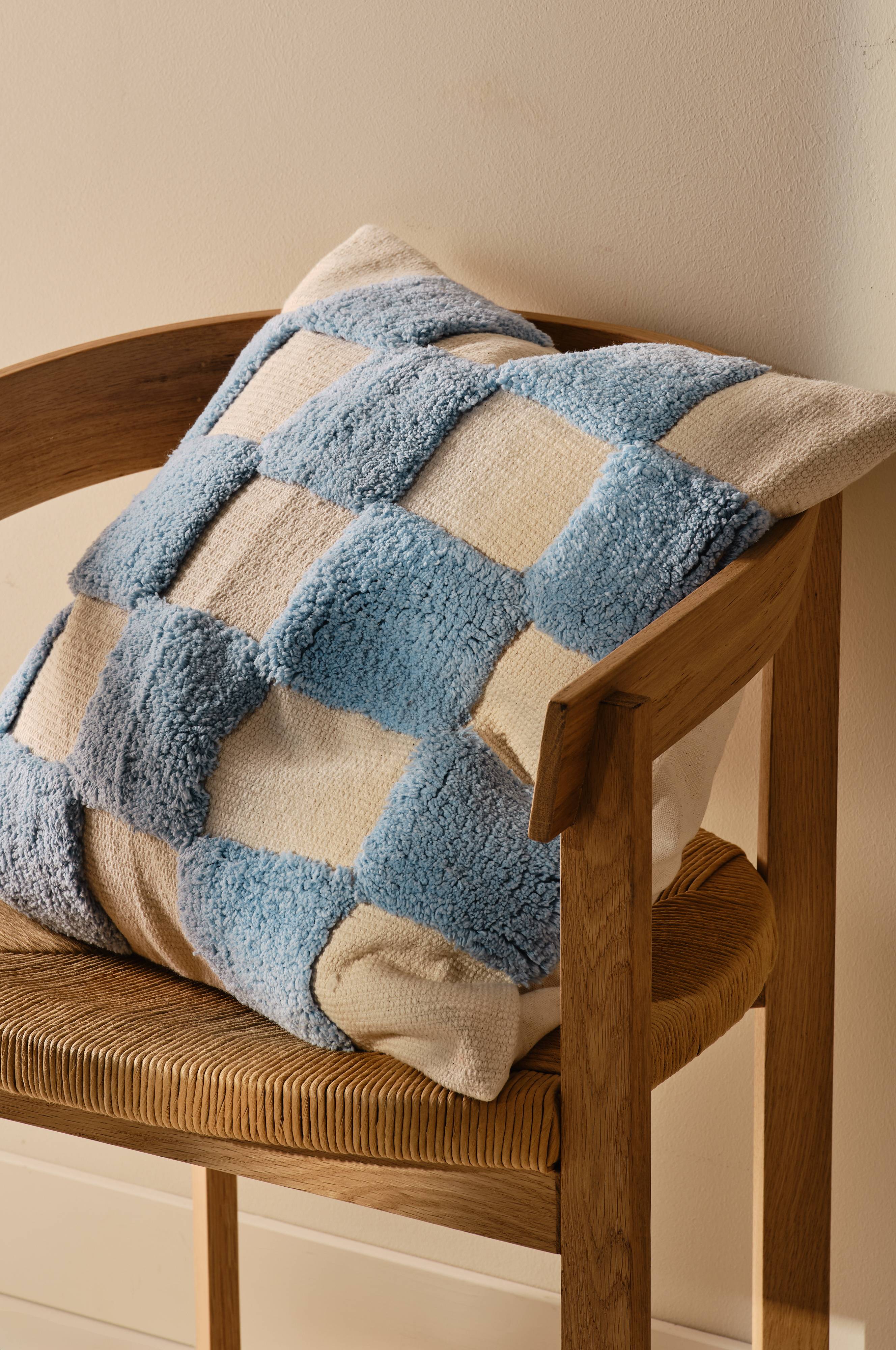 1-pak pudebetræk af bomuld med skakternet mønster tone-i-tone, hvor hver anden tern er tuftet og har blød luv. Ensfarvet bagside med skjult lynlås.