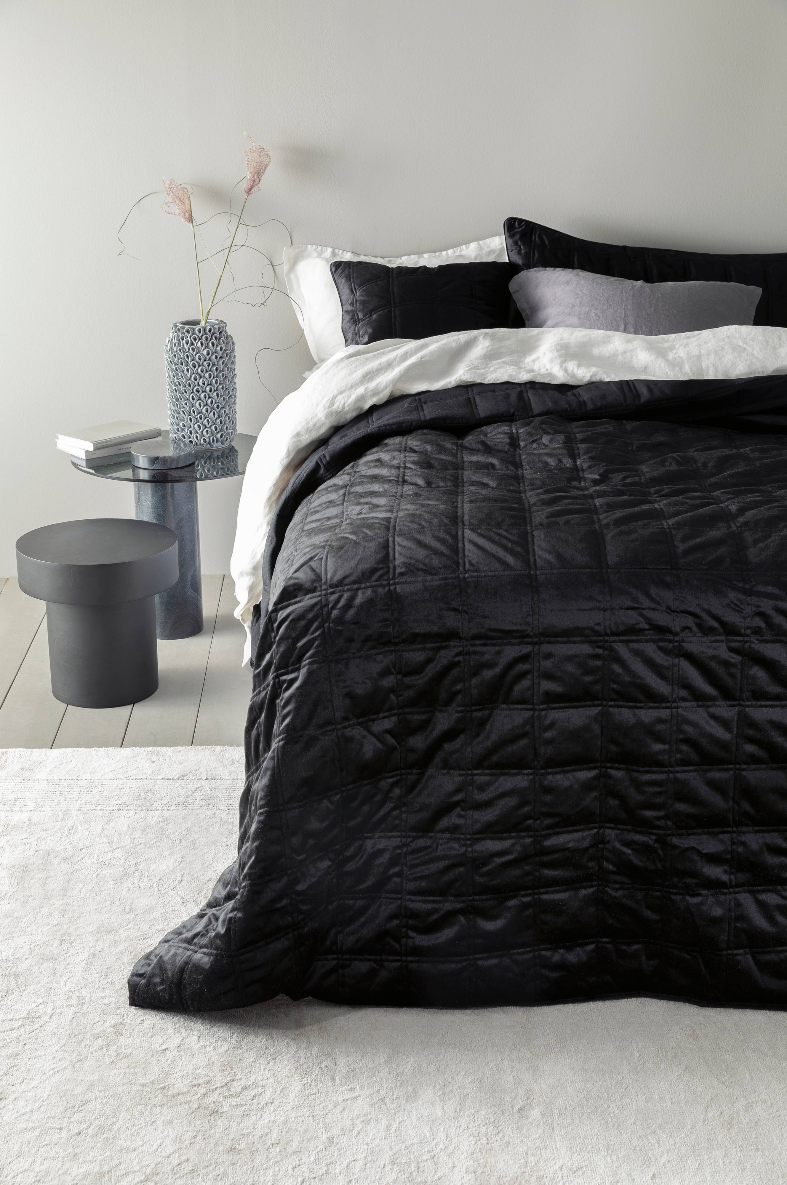 Sengetæppe til dobbeltseng. Sengetæppet er i quiltet velour med syede tern og matchende velourbagside. Pudebetræk medfølger ikke, købes separat.