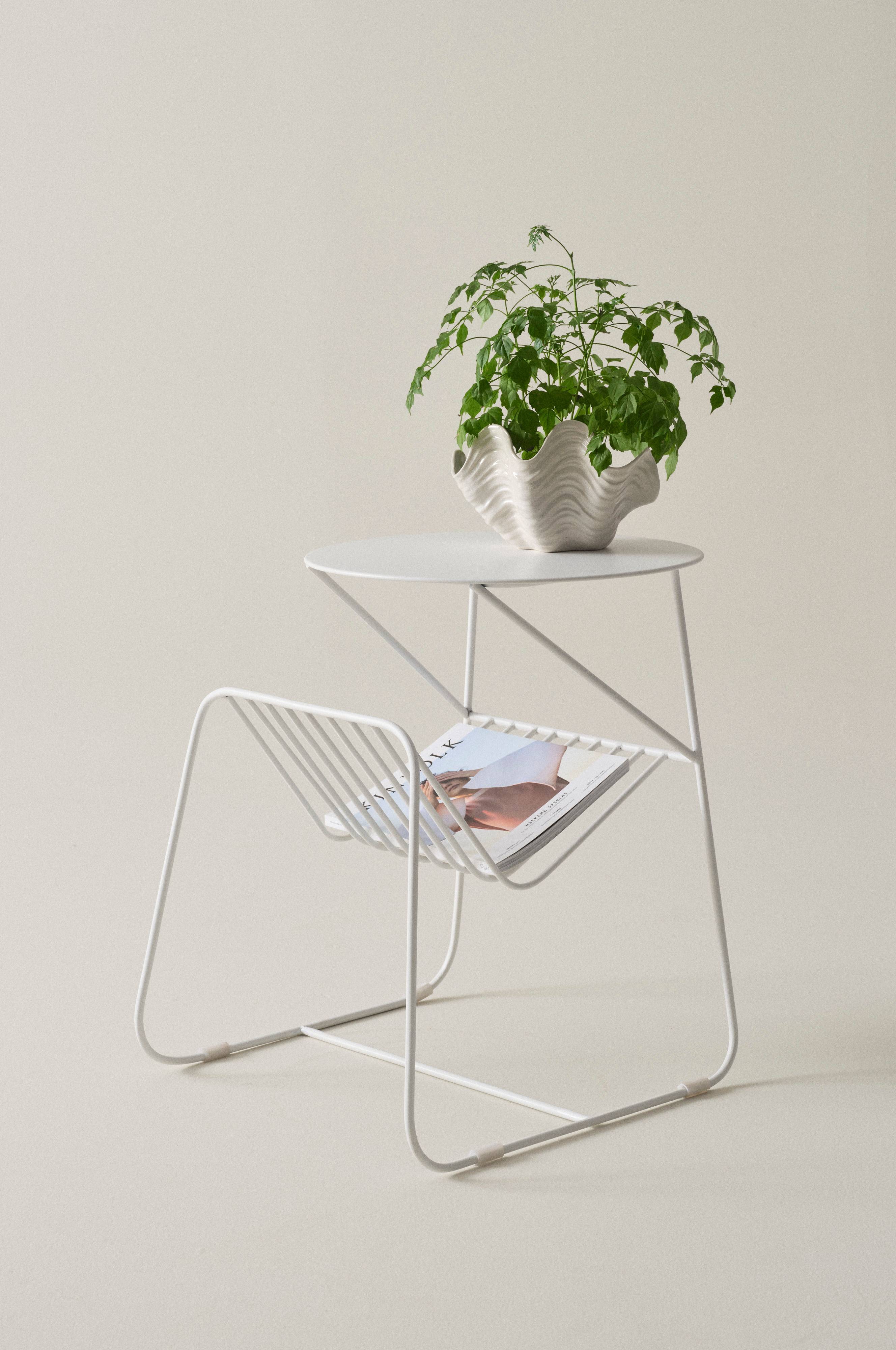 DALLY er et sidebord med aviskurv, møblet er udelukkende lavet af pulverlakeret jern. Bordet formidler lige dele retro og nytænkning. DALLY opfylder to funktioner og passer perfekt ind i den mindre bolig, hvor pladsen er begrænset.