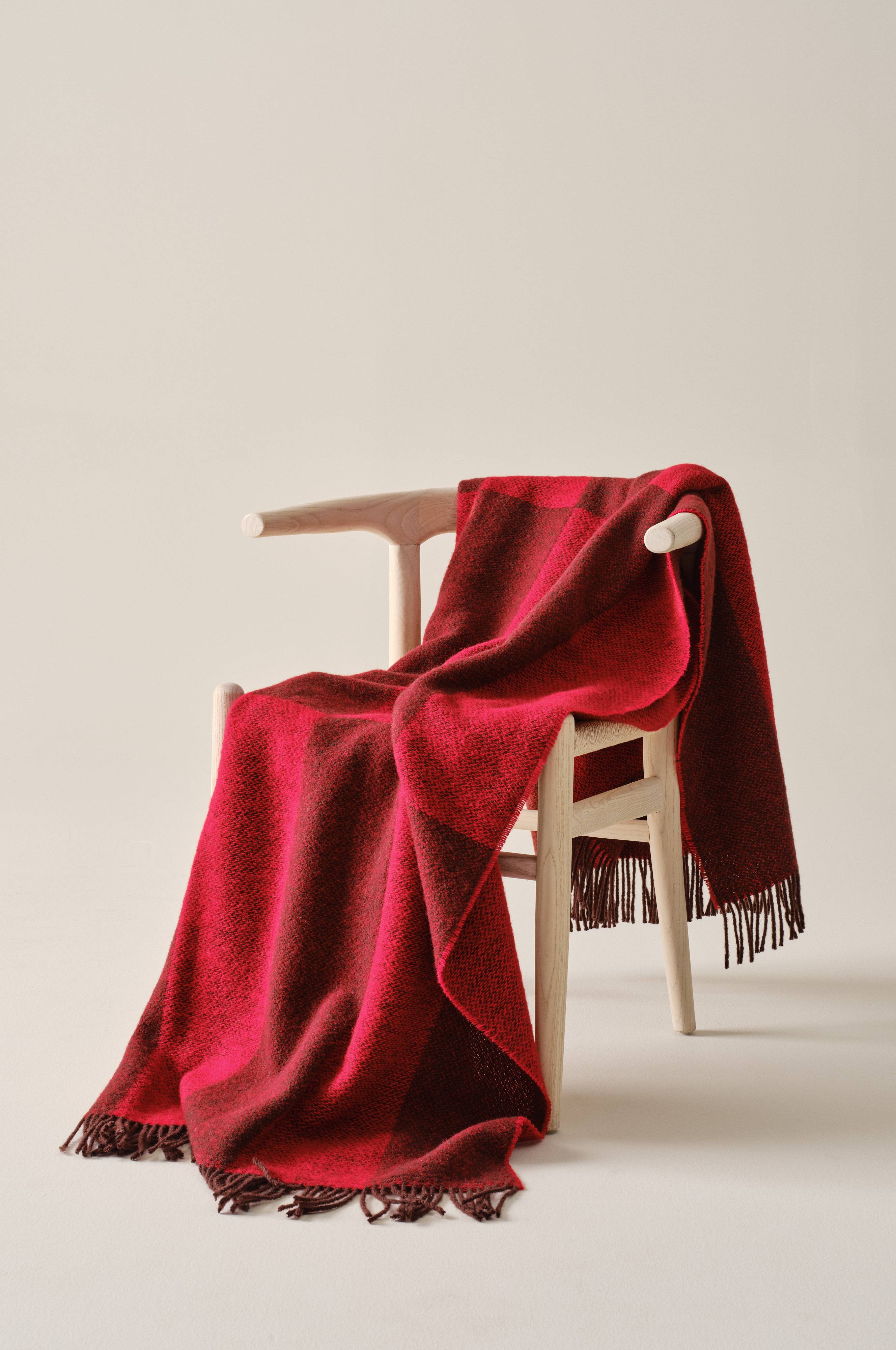 Plaid med klassiske firkanter i varme, jordnære toner. Dette jacquardvævede tæppe er fremstillet af ren uld og giver blødhed og varme til dit værelse. Frynser på de korte sider giver et strejf af rustik charme. Perfekt til hyggelige aftener.