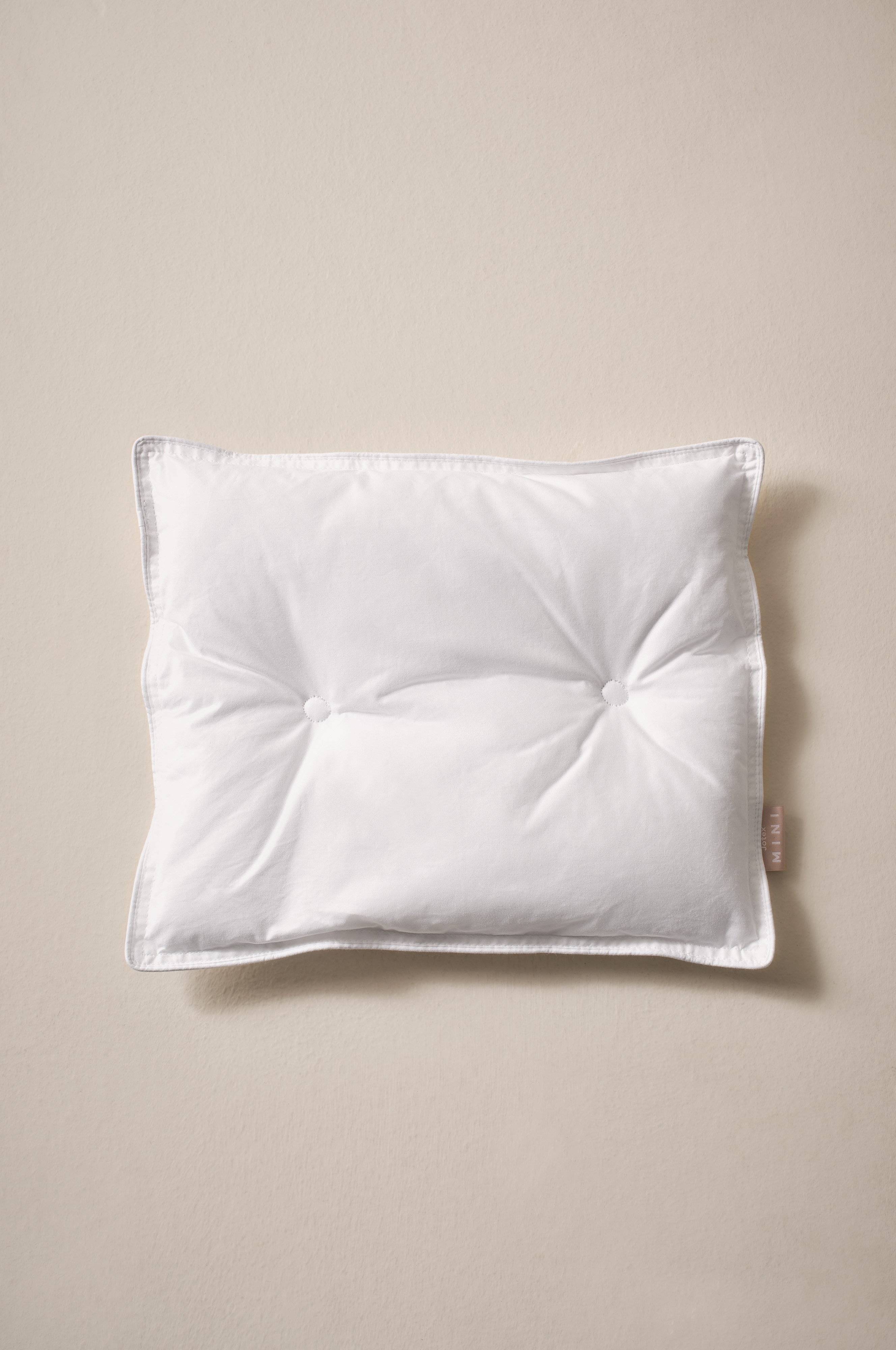 Ensfarvet pude til barnevognen eller vuggen i blød, økologisk bomuld. Fyld af kunstdun, som giver en skøn dunfornemmelse, men har fordelene ved polyester, der er let at holde ren og frisk. Puden er forkrympet og behandlet, så den bliver blød, smidig og ikke knitrer. Vægt: 80 gram.