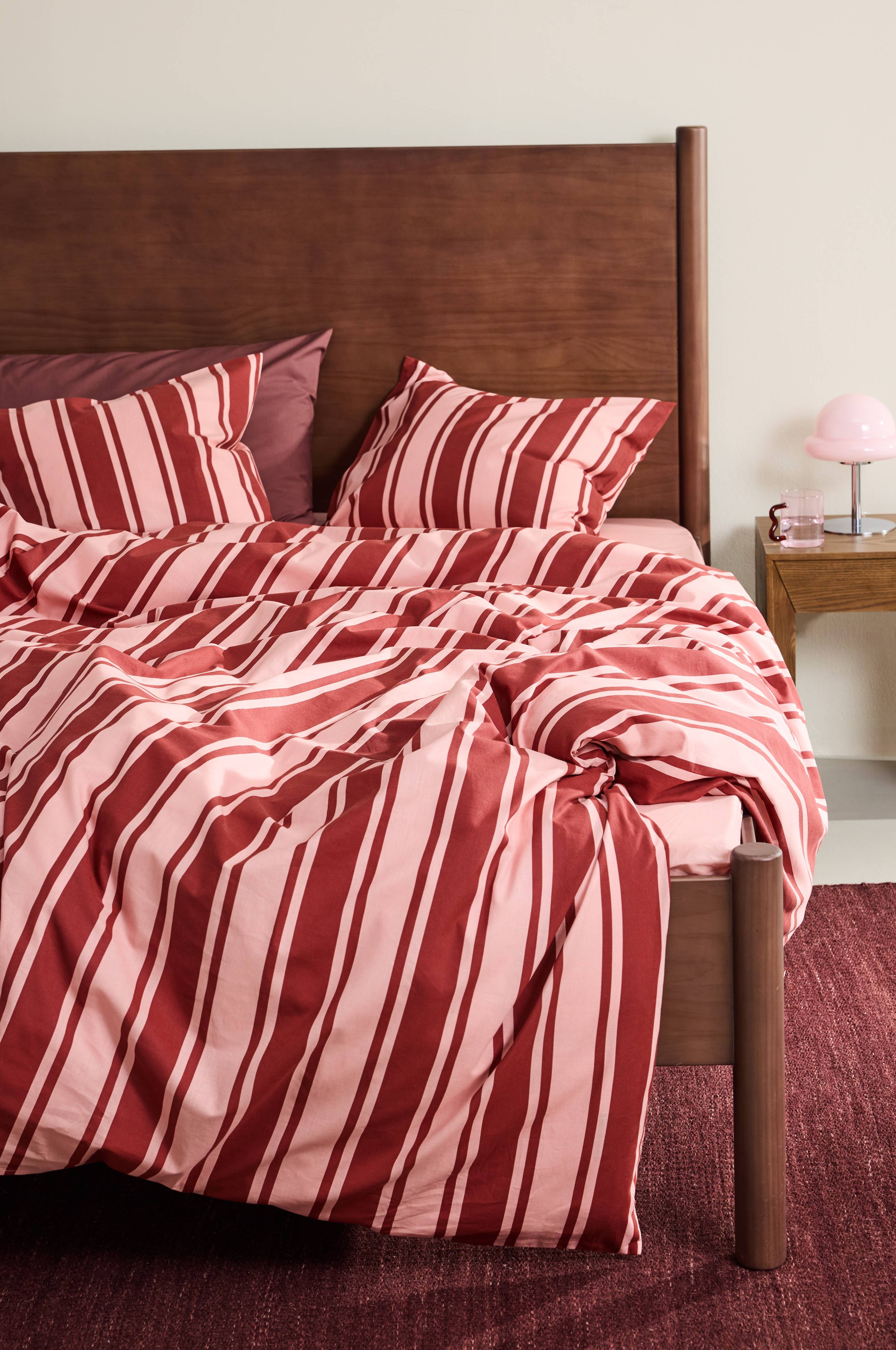 DEBBIE-sengesættet bringer retroflair til dit soveværelse med sine pigmentprægede striber. Sættet er fremstillet af økologisk bomuld og består af et ekstra bredt dynebetræk og to pudebetræk, som passer perfekt sammen med andre produkter fra DEBBIE-familien. Perfekt til dem, der søger trendy raffinement i deres indretningsvalg.