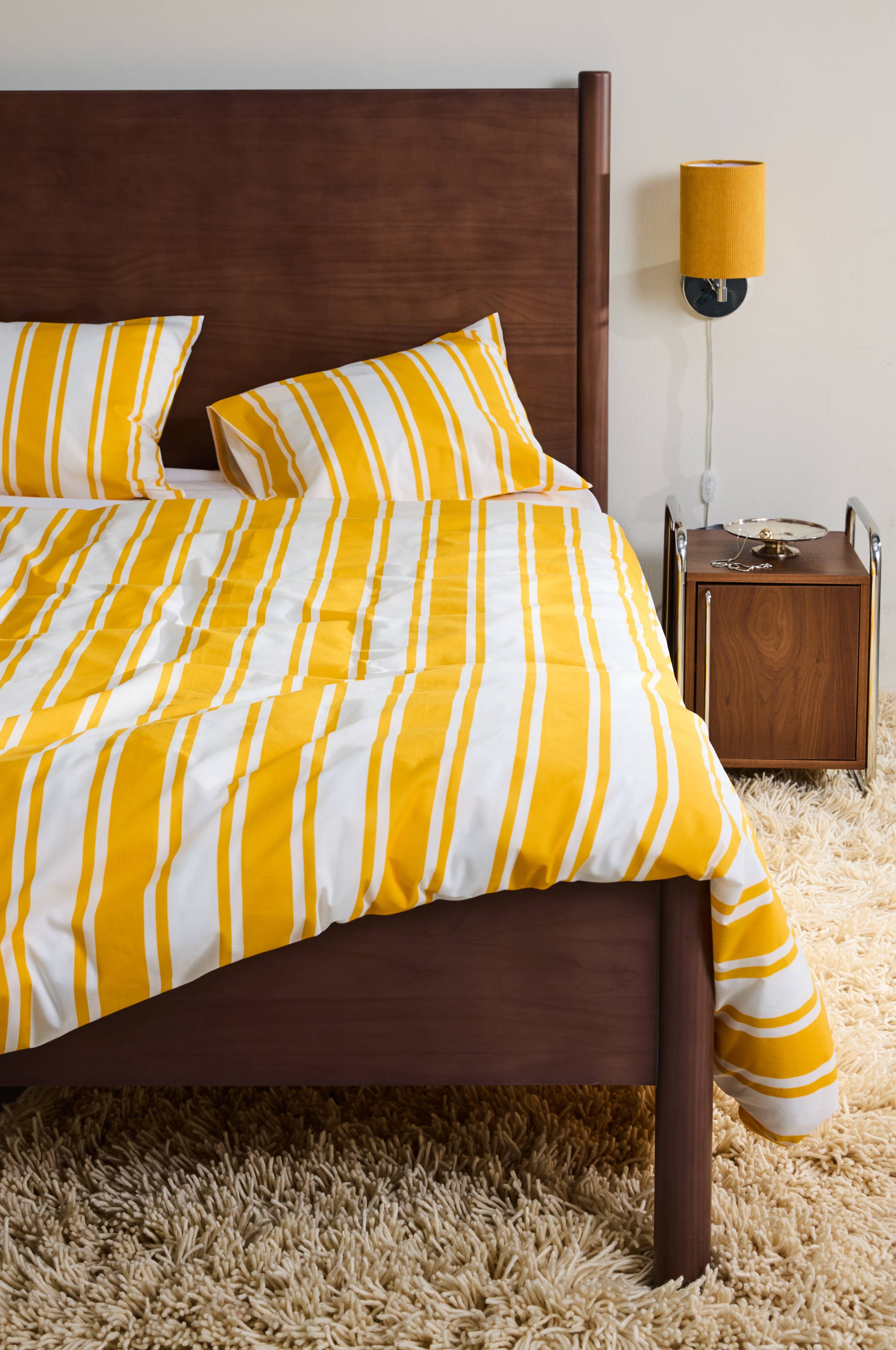 DEBBIE-sengesættet bringer retroflair til dit soveværelse med sine pigmentprægede striber. Sættet er fremstillet af økologisk bomuld og består af et ekstra bredt dynebetræk og to pudebetræk, som passer perfekt sammen med andre produkter fra DEBBIE-familien. Perfekt til dem, der søger trendy raffinement i deres indretningsvalg.