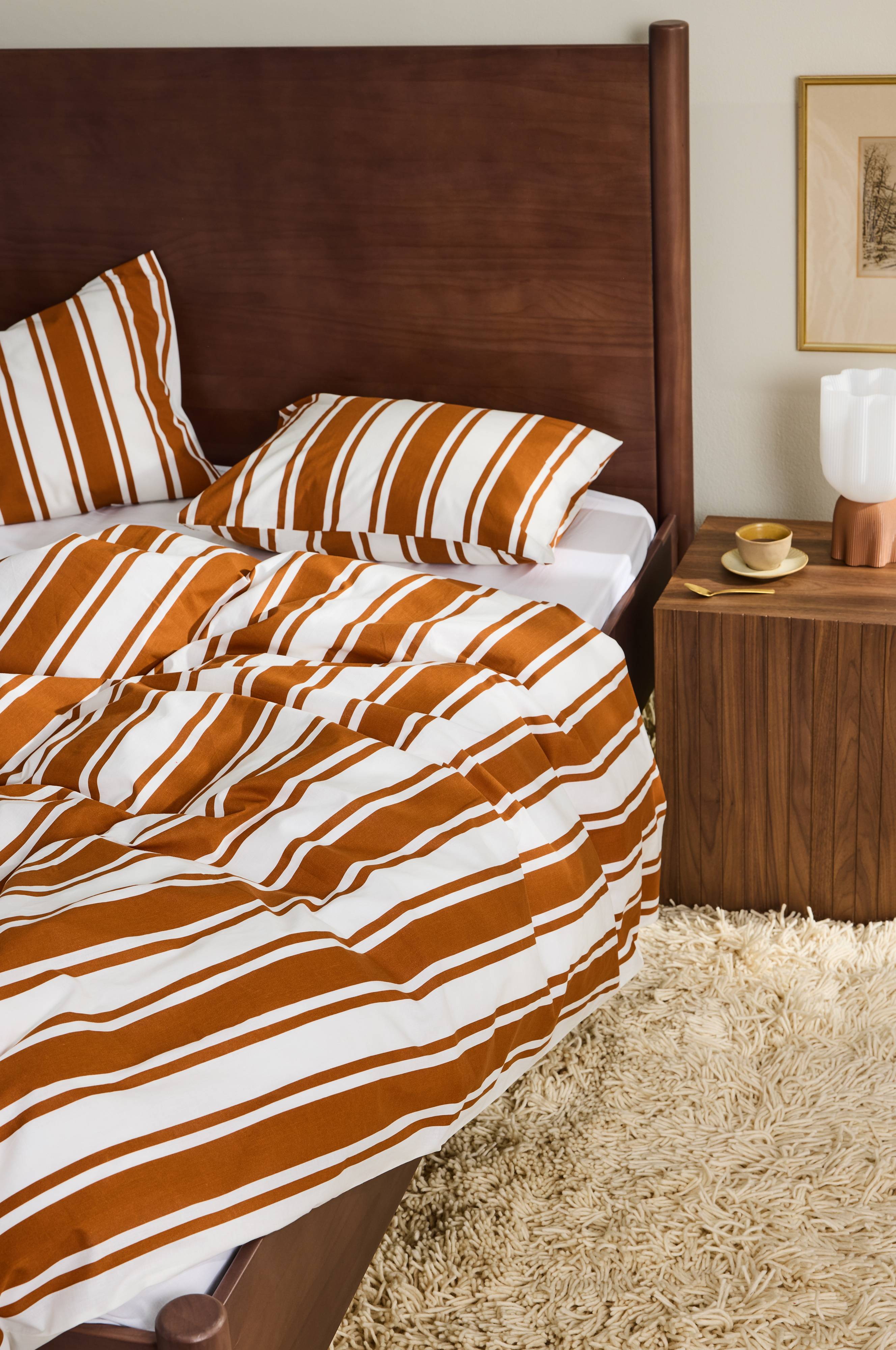 DEBBIE-sengesættet indfanger en retrovibe med sine pigmentprintede striber, hvilket gør det til et must-have for alle, der søger trendy interiørdesign. Sættet består af 1 dynebetræk og et pudebetræk og er en del af DEBBIE-familien med matchende elementer, der fuldender looket og løfter ethvert soveværelses æstetik.